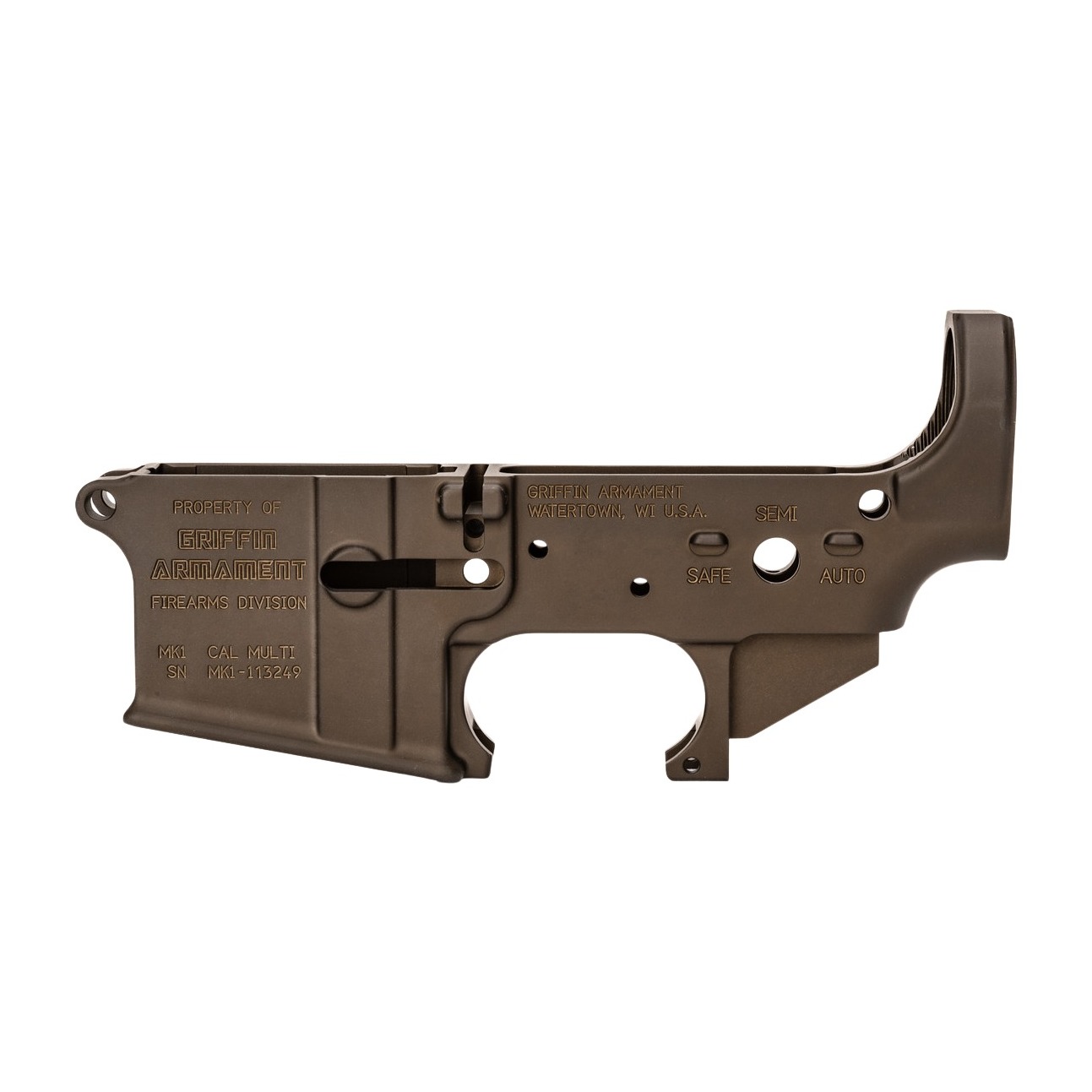 The Griffin Armament MK1 Stripped Lower provides a strong and reliable foundation for your next rifle build. Precisely machined from high grade 7075 aluminum to exact standards, ensures proper fitment and performance with mil spec lower components. To enhance durability, the MK1 Lower is hardcoat type 3 anodized for excellent resistance to surface wear including scratches, scuffs, and discoloration from cleaning solvents and oils. Additionally, the MK1 Lower features a mil-spec fire control pocket.