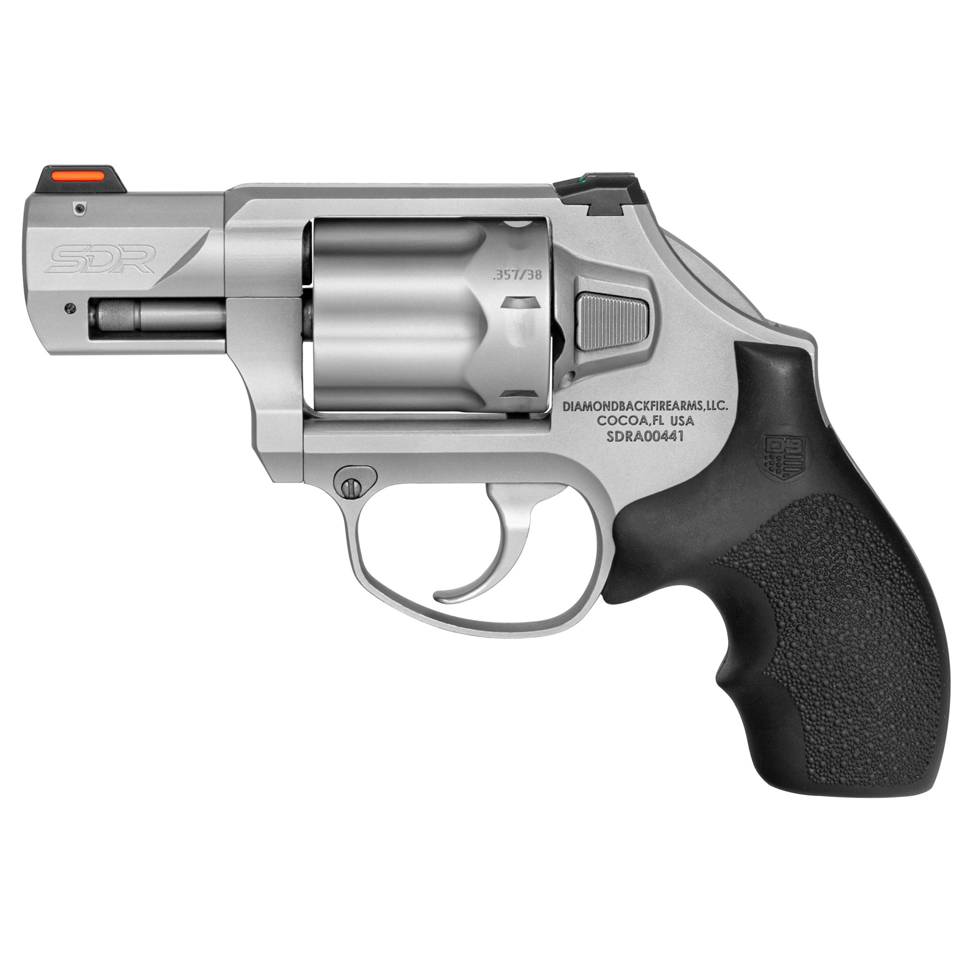Diamondback Firearms, SDR, Double Action Only, Bobbed Hammer, Revolver, .357 Magnum, 2” Barrel, Glass Bead Finish, Stainless, Fiber Optic Sights, Rubber Grips, 6 Rounds
