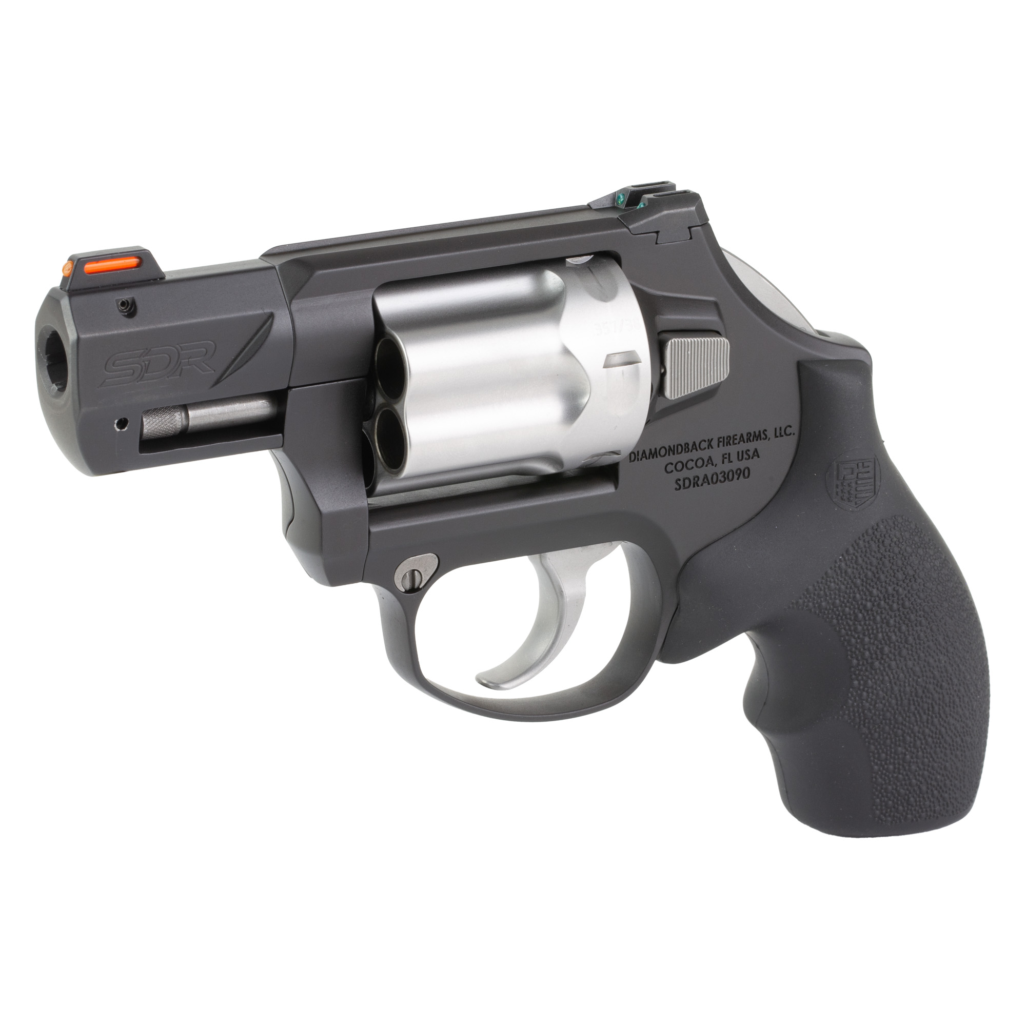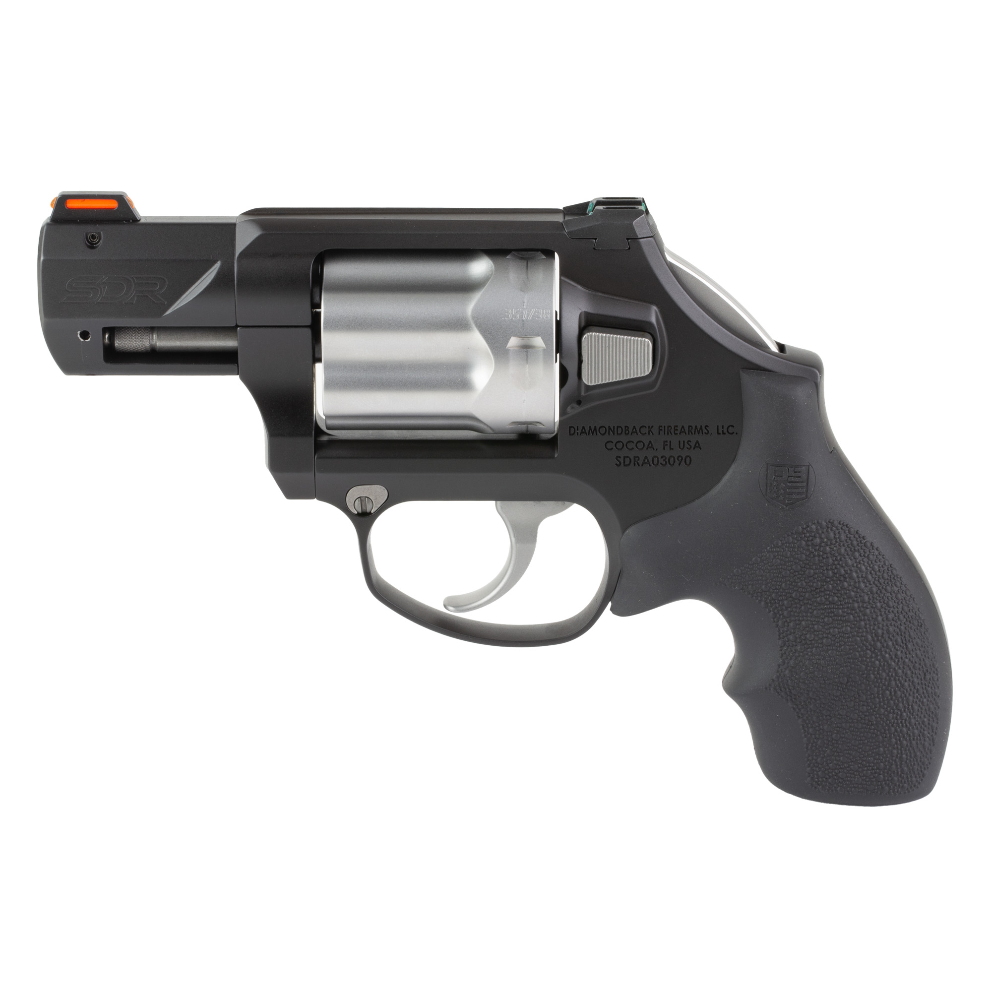Diamondback Firearms, SDR, Bobbed Hammer, TALO Exclusive, Double Action/Single Action, Revolver, 357 Magnum/38 Special, 2” Barrel, Stainless Steel Construction, Black Nitride and Glass Bead Finish, Two Tone Black, Rubber Grips, Fiber Optic Sights, 6 Rounds
