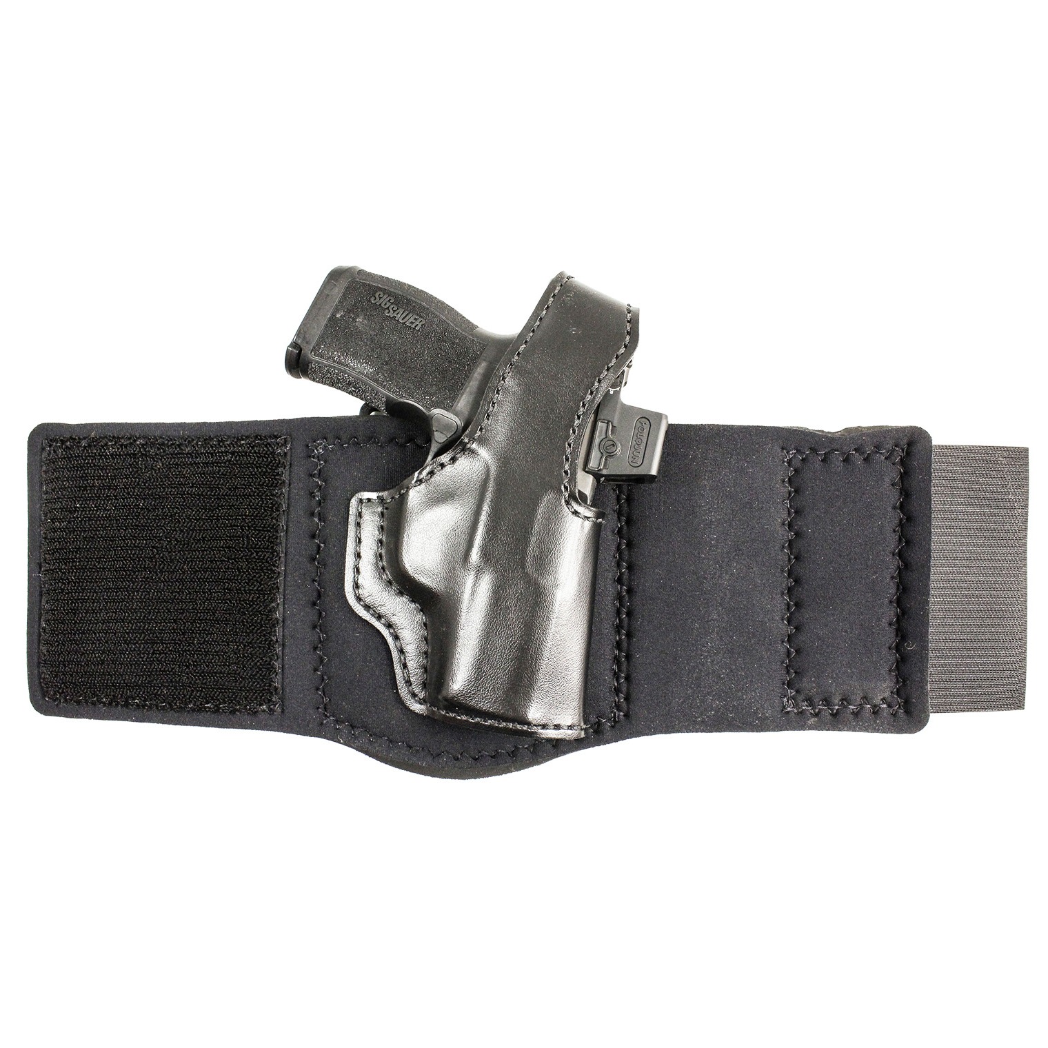 The Die Hard Ankle Rig is built from top grain saddle leather and finished on the outside with a super tough PU coating. This combination of materials was originally designed for Federal Law Enforcement with longevity and performance as primary concerns. The Die Hard Ankle Rig features a tough top grain leather lined holster with a conventional thumb break that has been attached to a neoprene leg band. The leg band is padded with foam and lined with sheepskin.