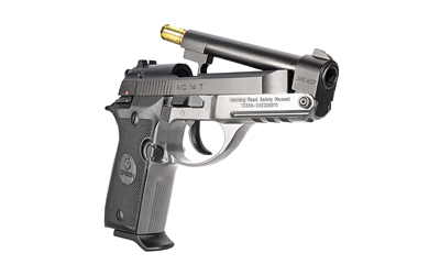 The MC 14T Solution by Girsan focuses on ease of use and high capacity in a compact design. Due to the Tip-Up design (no slide racking required) loading and firing the MC 14T is simple and quick, using very minimal moving parts to go from loading to firing. The tip-up barrel feature is primarily being marketed toward those who have difficulties operating the slide on traditional semi-auto handguns. To load a round into the chamber, all one has to do is press the lever on the right side of the frame down to release the barrel, pop a cartridge in and snap the barrel closed.