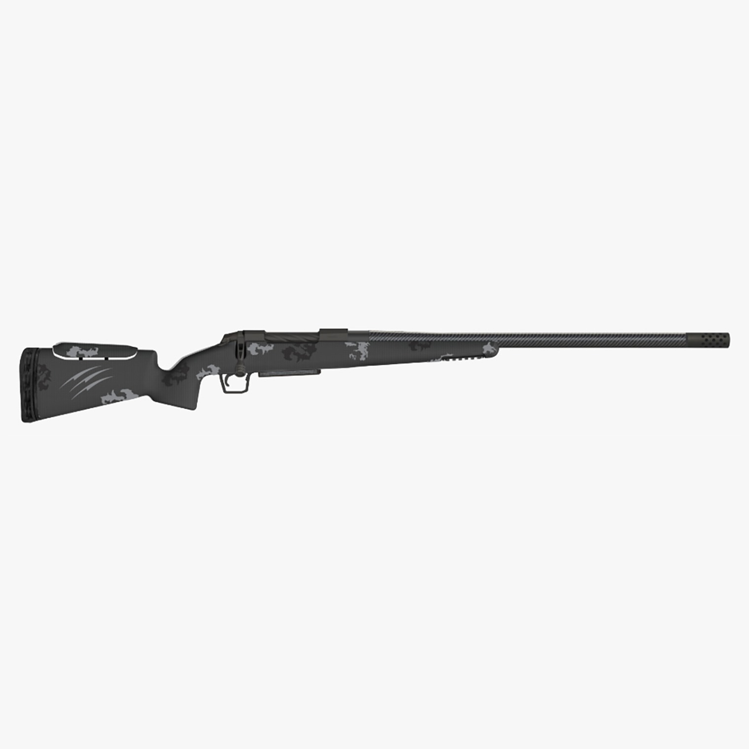 The Fierce Carbon Rival XP has added an adjustable comb stock design and drop box magazine. Featuring stainless steel Fierce Dual-Lug action; 70 degree bolt throw; precision cut raceways; 2-Position Safety; Bix’N Andy trigger, match grade adjustable trigger (1-3 lbs.); C3 Carbon Fiber barrel w/Matrix finish, Match grade, hand lapped barrel liner, 1/2 MOA Accuracy Guarantee; C3 Carbon Rival stock, Vertical palm swell pistol grip, high negative comb cheekpiece with adjustable comb; Integral pic rail for bipod attachment and a solid carbon bedding system. Includes Titanium muzzle brake.