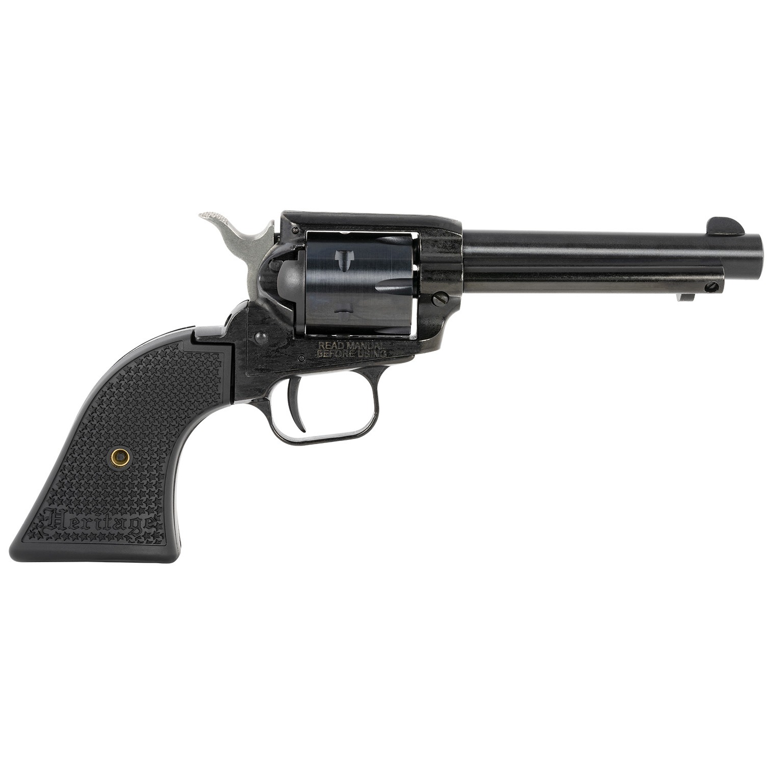 For making tin cans dance in the back yard, pinging steel, or controlling pests and varmints around the farm, nothing beats the low-cost, high-adrenaline thrill of a single-action rimfire revolver. The Heritage Rough Rider handguns are built with numerous grip options and feature the same classic profile and precision action as their big-bore counterparts yet come chambered in .22 LR. This one is presented in an all black on black configuration for a great stealth look.