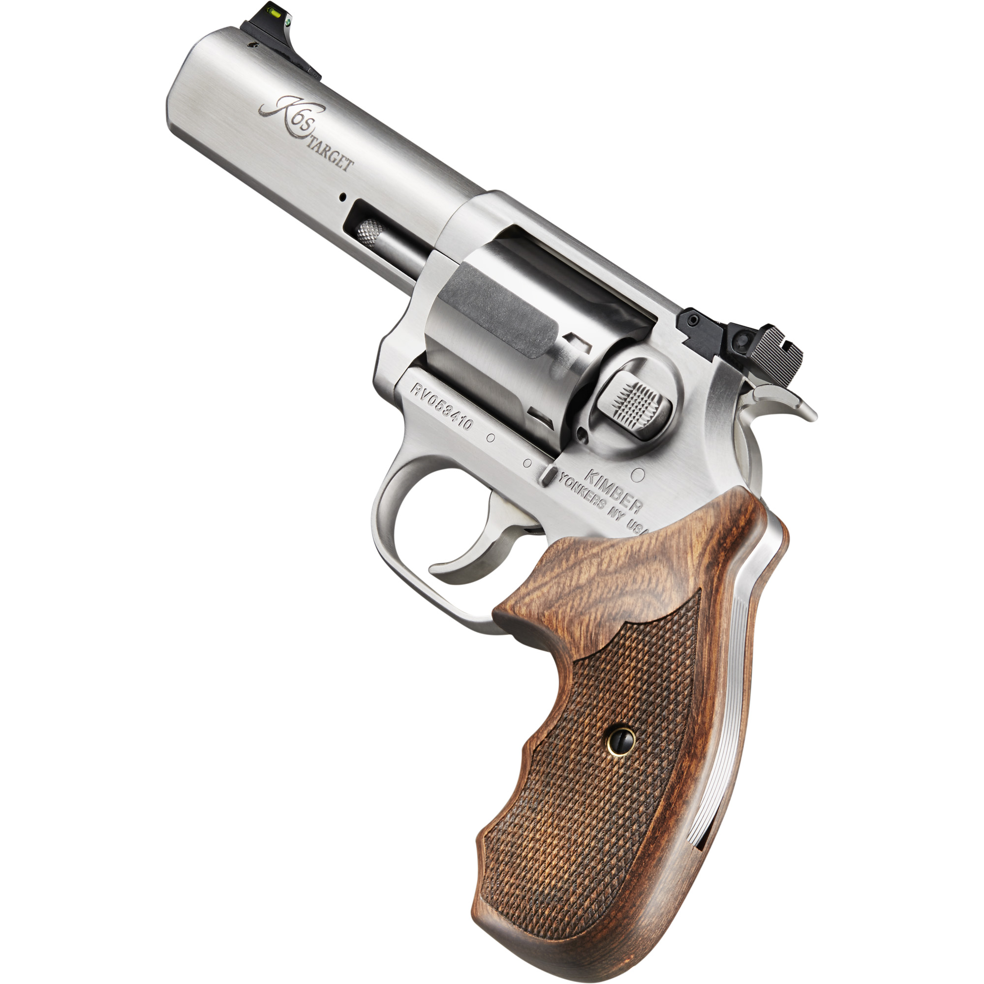 Kimber Mfg, Inc 3400032 K6S Target GFO DA/SA 357 Mag 6 Shot 4” Brushed Stainless Steel Barrel & Cylinder, Brushed Stainless Steel Frame, Diamond Checkering Grip