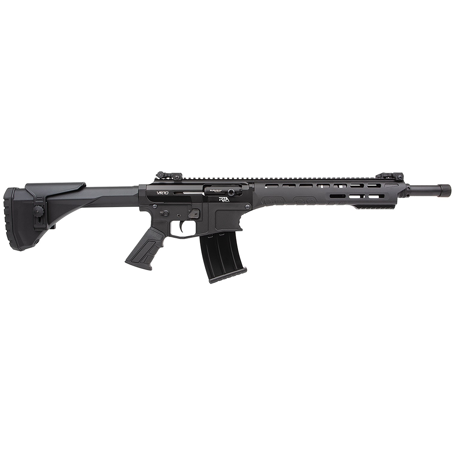 The VR70 offers familiar AR-15 ergonomics. The gas-operated semi-automatic shotgun has an upper constructed of 7075-T6 aluminum with a polymer lower and forend. Its magazine fed with a 5rd capacity of 2.75” and 3” shells.