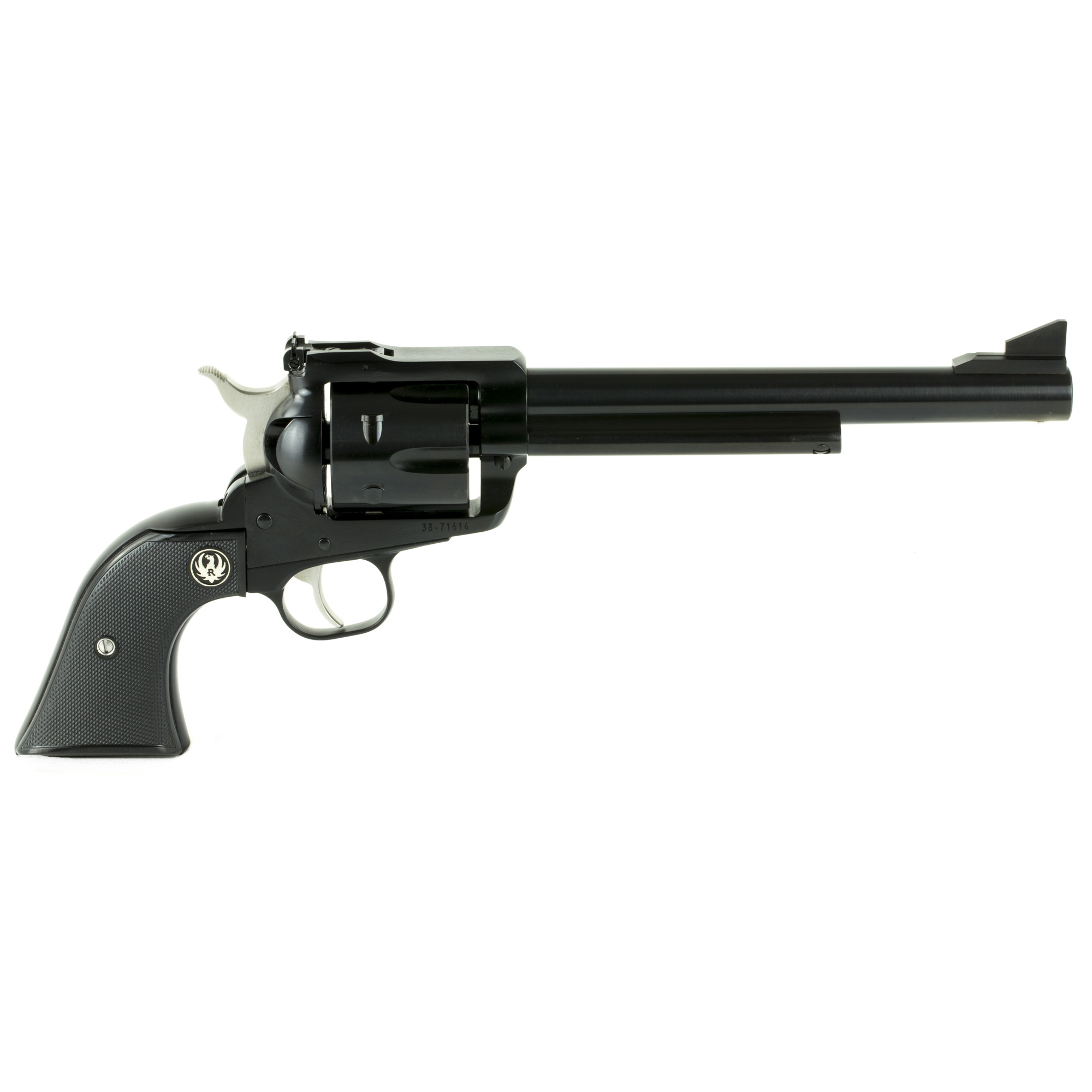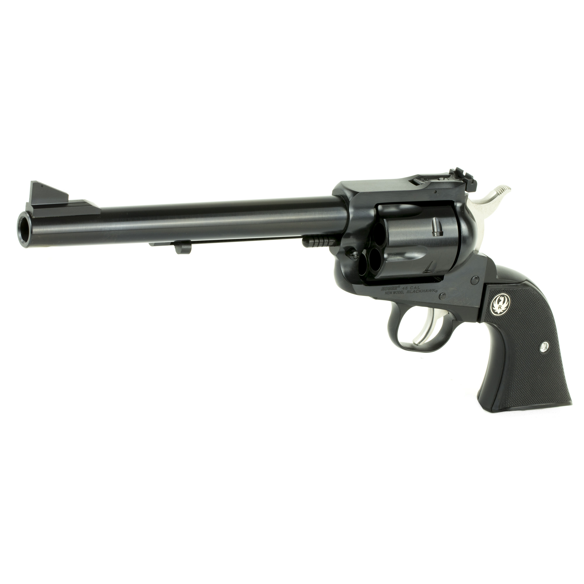 The Ruger Blackhawk transfer bar mechanism and loading gate interlock provide an unparalleled measure of security against accidental discharge. Its cold hammer-forged barrel results in ultra-precise rifling that provides exceptional accuracy, longevity and easy cleaning. The Blackhawk has ramp front and adjustable rear sights along with traditional western-style, hand-filling grip.