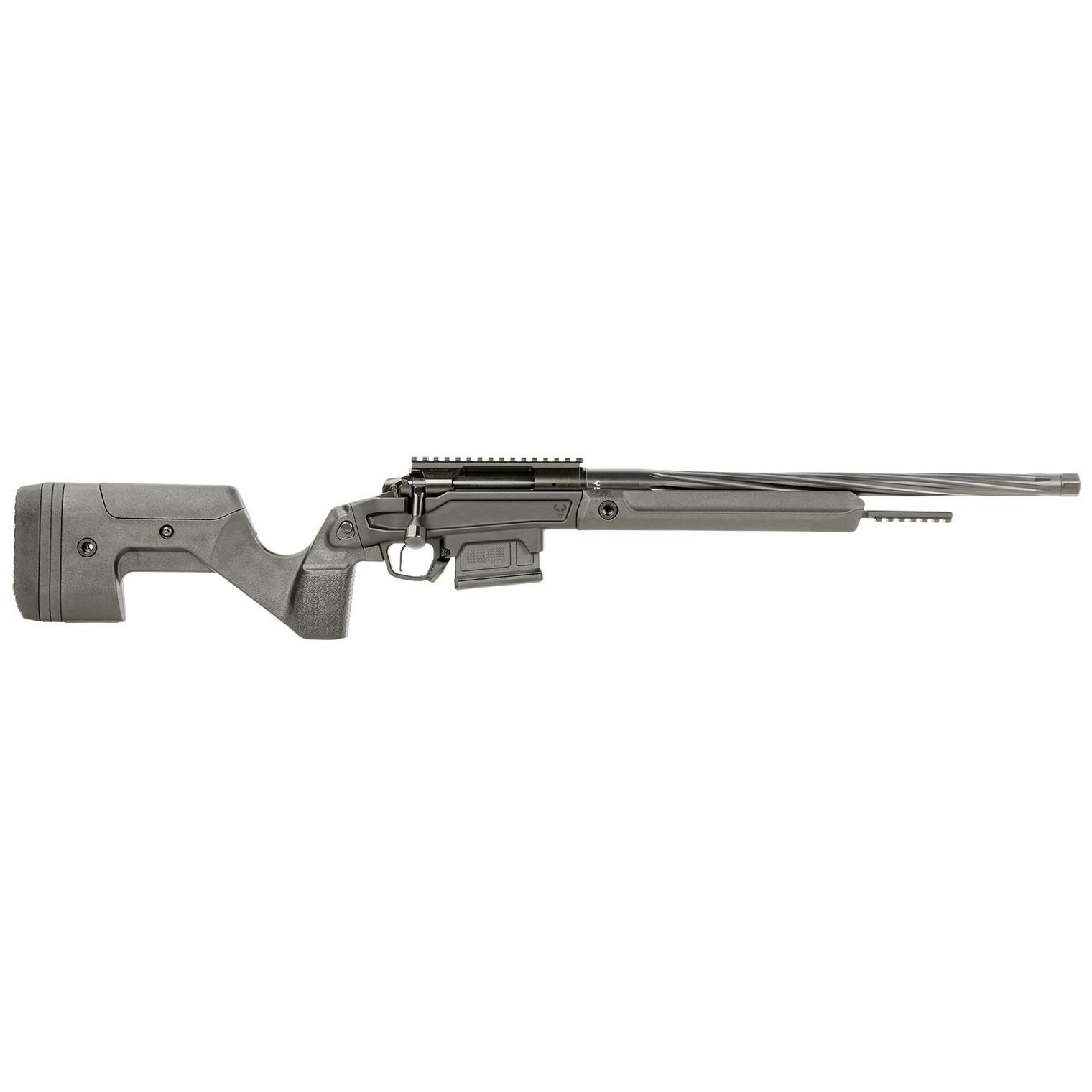 Building on the timeless Remington 700 footprint, this rifle features an interchangeable three-lug bolt head, a 60-degree bolt throw, a tool-less quick disassemble bolt, and a pinned recoil lug, offering a seamless blend of precision and reliability for every shooter. Chambered in 6.5 CM, this rifle features an 20” fluted stainless steel barrel with a Cerakote finish. It is compatible with Zermatt Origin-shouldered pre-fits and non-shouldered Savage Small Shank barrels with a barrel nut. The modular, Tan, hybrid hunter stock has an adjustable cheek riser and length of pull, creating a stable and repeatable rifle fit. The stocks unique AR10-style design allows for tool-less takedown and convenient storage. The rifle’s action has a rigid, bolt-on 20 MOA-biased rail and comes with MLOK sections, a Picatinny spigot, and integrated QD cups. As well as a Arca Swiss plate, an attachable bag rider, and is AICS/AW compatible. The adjustable, single-stage Trigger Tech Primary offers zero creep for a consistent trigger press shot after shot.