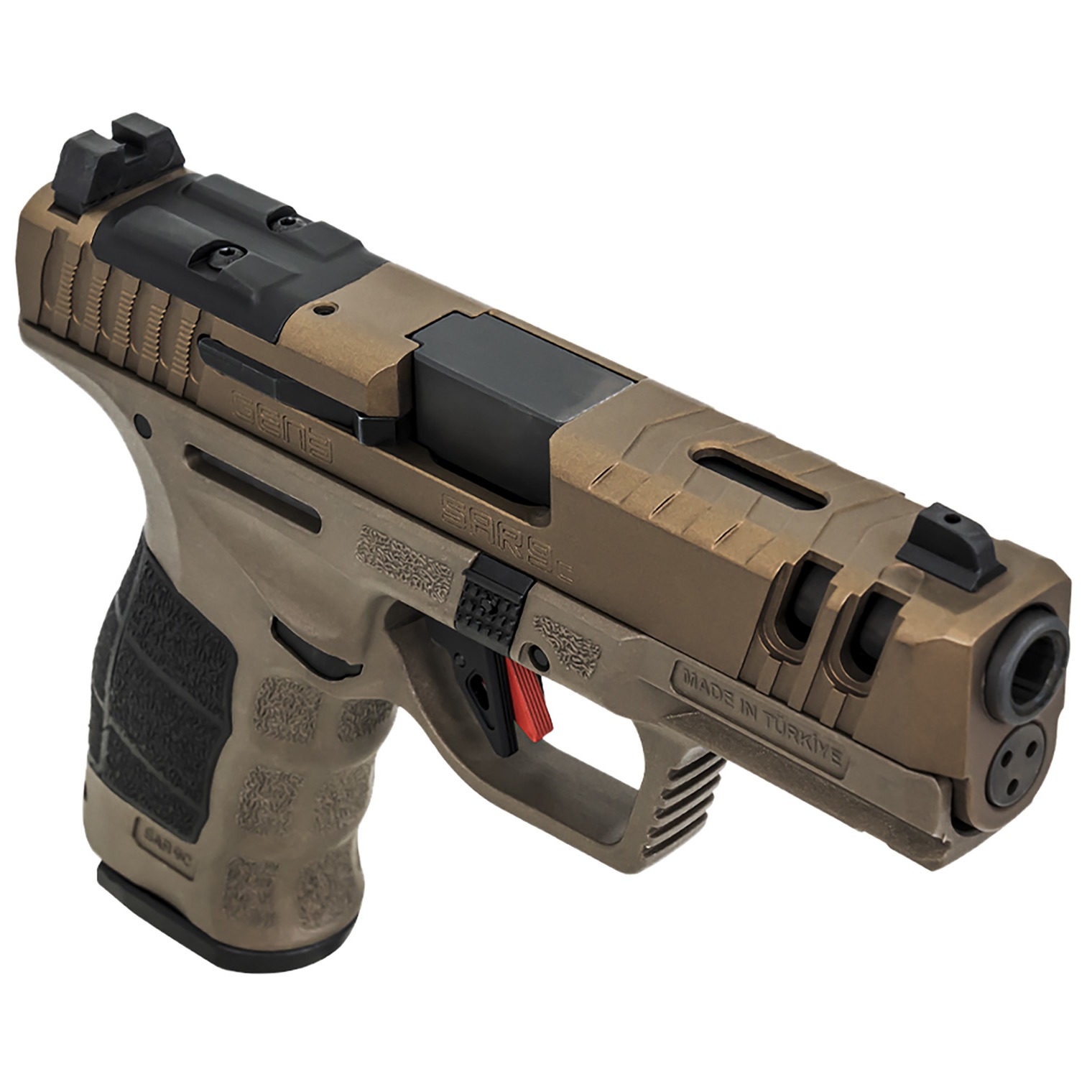 Chambered in 9mm, the SAR9 Compact is the perfect balance between a micro and full-size pistol. Its small and light enough to be easily concealed and comfortably carried, yet has the capacity of a full-size pistol. The SAR9 Compact features a hammer-forged barrel with recessed crown; rear sight, tabbed trigger safety, firing pin black and hammer block and polymer frame. Includes two 15rd magazines and interchangeable backstrap and side plates.
