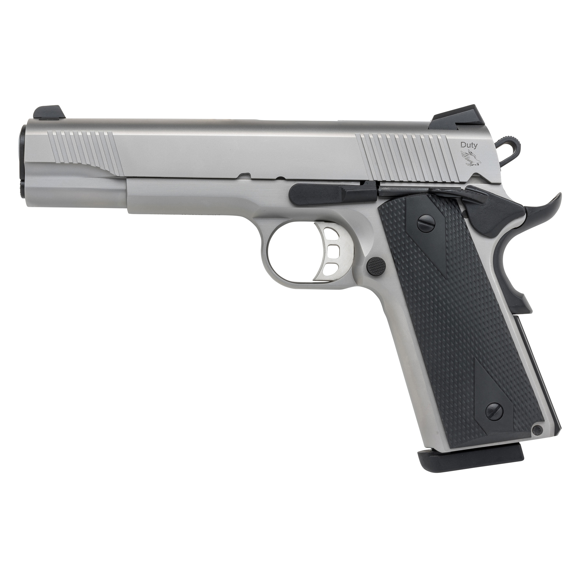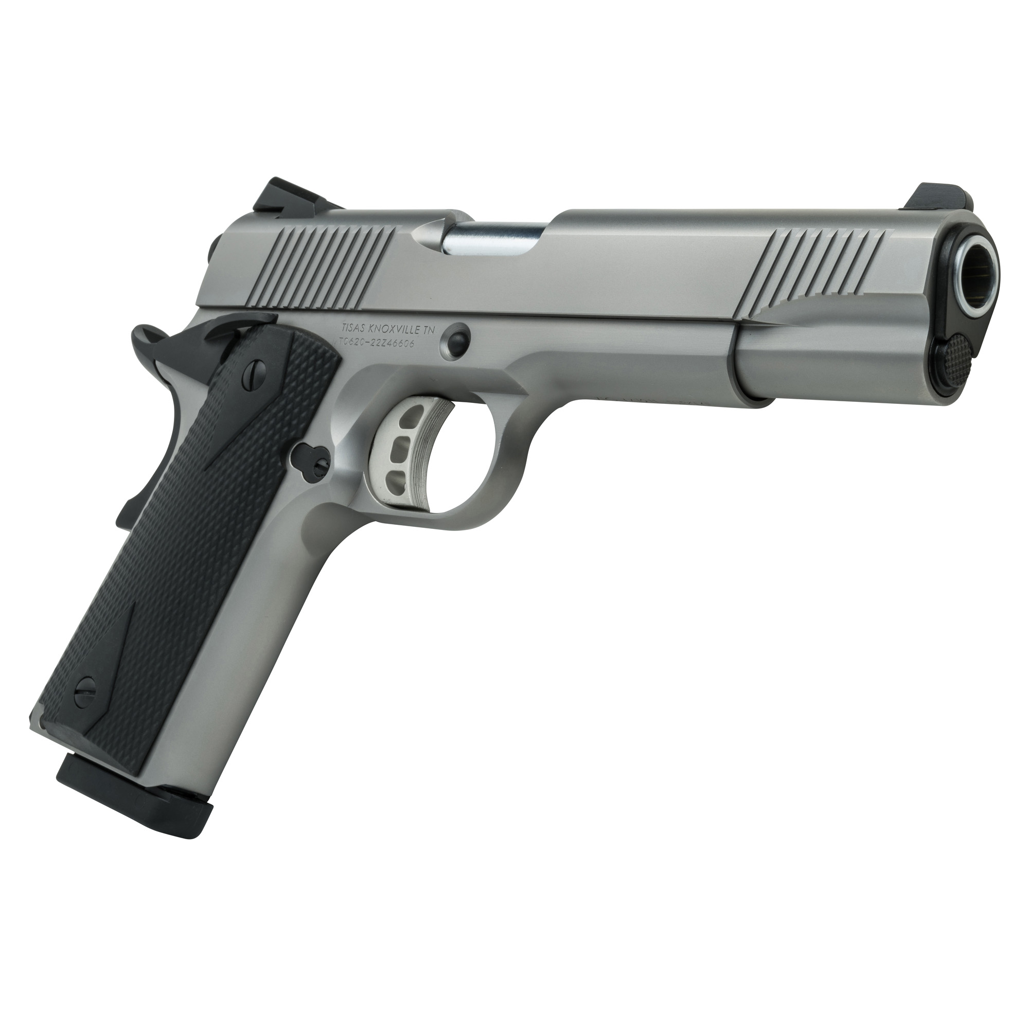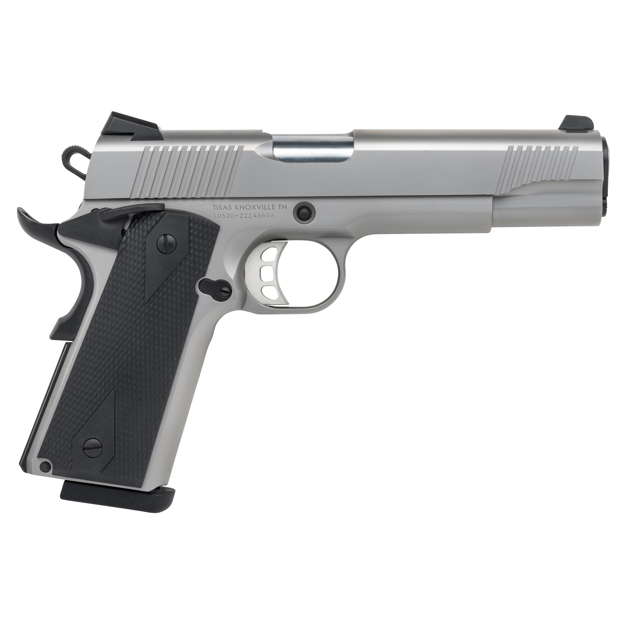 Tisas 1911 Duty pistol is a modernized version of the venerable 1911 pistol. The pistol features a hammer forged slide with front and rear slide serrations; hammer forged, stainless steel full-size frame; flared and lowered ejection port; skeletonized hammer and trigger; ambidextrous extended safety; 3-Dot Low-Profile Sights, Novak Style Cut and Series 70 Internals. Includes two magazines, cleaning kit, owners manual, waterproof and lockable hard case w/fitted cut foam insert.