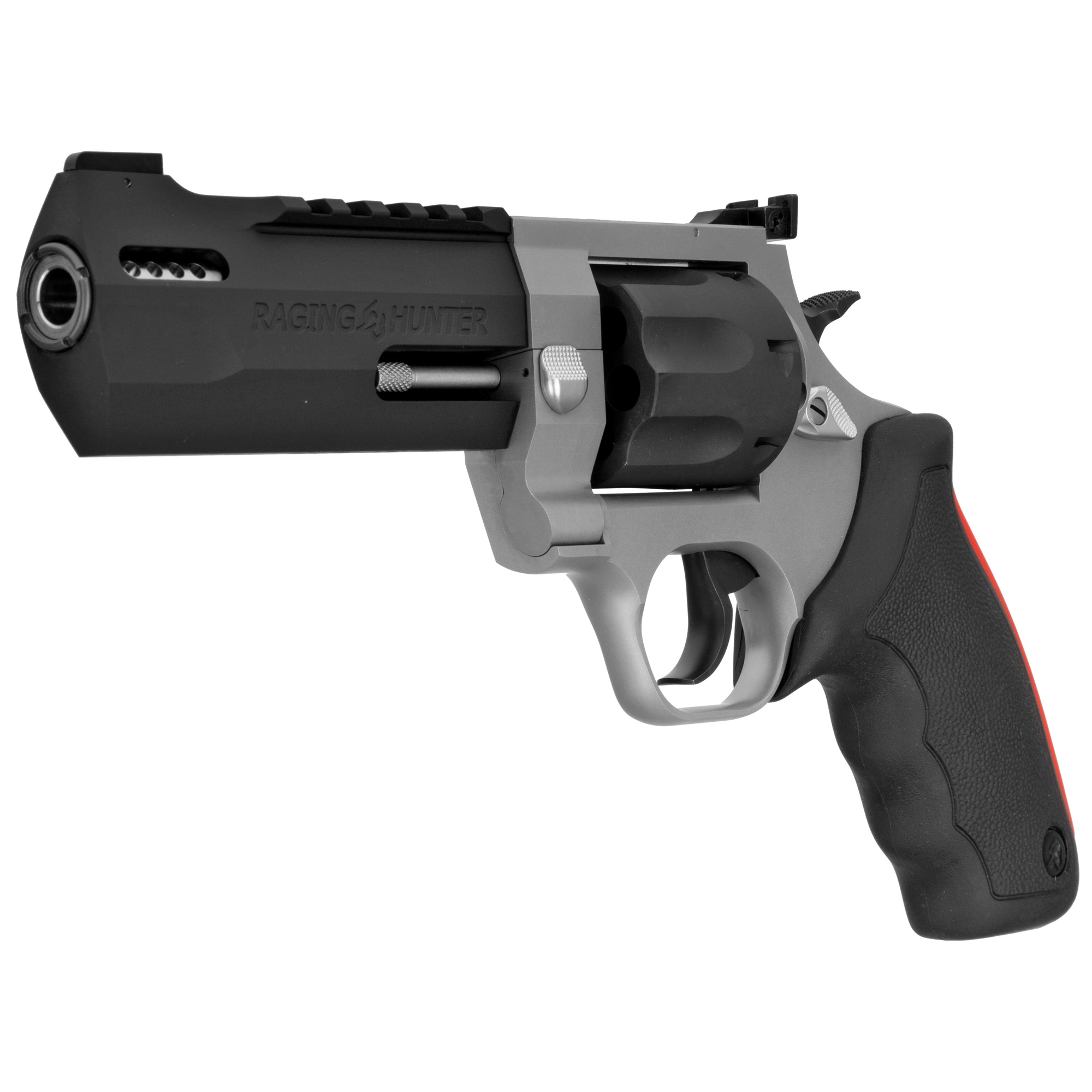 The cushioned insert grips on the Raging Series large frame revolvers makes shooting them comfortable and controllable. Also aiding in recoil management is the unique placement of the factory-tuned porting and gas expansion chamber that is designed to disperse gases directionally-reducing muzzle lift and delivering quicker target acquisition. This built-to-last revolver is a fun and effective alternative for short to medium range hunting scenarios