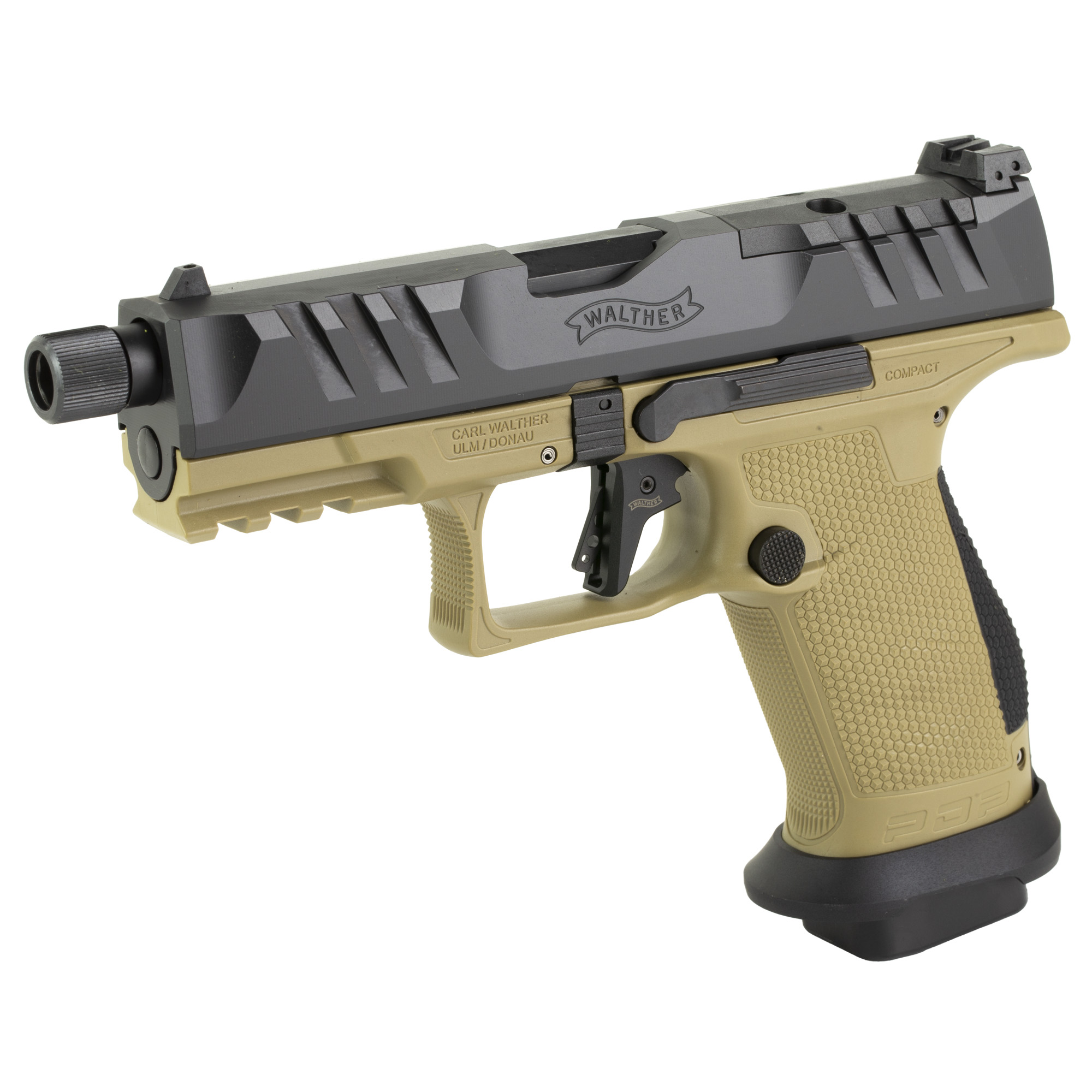 The PDP elite handgun is for whether you are on the job or with the family, it is your duty to stay ready for any situation that may come. With revolutionary ergonomics, SuperTerrain Slide Serrations and a Performance Duty Trigger, this is the next evolution in world-class ingenuity for pistols. The SuperTerrain Serrations are uniquely designed protruding serrations on the slide, allowing for quicker and more responsive hands-on engagement with the pistol. Performance Duty Texture provides an aggressive surface to maintain proper grip performance. With its tetrahedron design, it is non-abrasive so there will be no irritation to the skin or clothing of the user. The PDP comes optic ready. The Pro SD comes with a flared magwell, threaded barrel and three magazines.