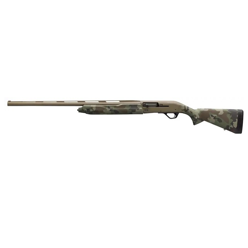Winchester’s Super X Autoloading shotgun has a worldwide reputation for speed, reliability and handling. The Super X4 is lighter, faster cycling, smoother swinging and more ergonomic than ever before. The self-adjusting active valve system cycles a wide variety of loads while reducing “felt recoil”, while an active valve system adjusts gas pressures using Quadra-Vent technology. Quadra-Vent Ports vent excess gases for cleaner operation. Its stock features improved ergonomics, a smaller pistol grip and textured gripping surfaces give your hands a sure, non-slip grip. It also utilizes LOP spacers and a Inflex technology recoil pad. The SX4 barrel features back-bored technology and Invector-Plus choke tubes. This Hybrid Hunter model features a Woodland camo finish.
