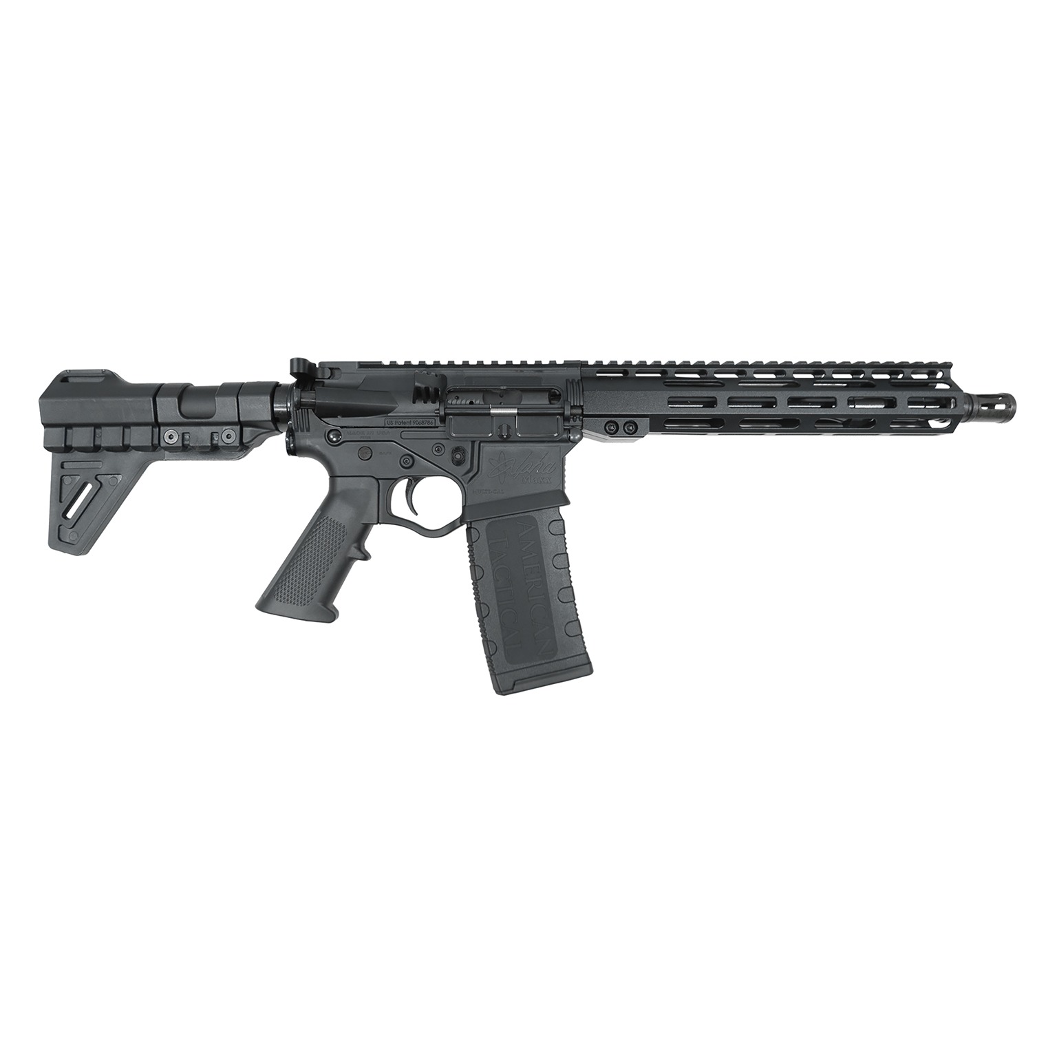 The ATI Alpha Max 5.56 Tactical Pistol is a compact and lightweight firearm designed for versatility and maneuverability. Featuring a 10.5” barrel and a 10” M-LOK rail, this pistol is perfect for close-quarters scenarios, tactical applications, or recreational shooting. Its durable construction is complemented by a blade-style pistol brace, offering enhanced stability without compromising its compact design. The pistol comes with a 30-round magazine, making it ready for action right out of the box.