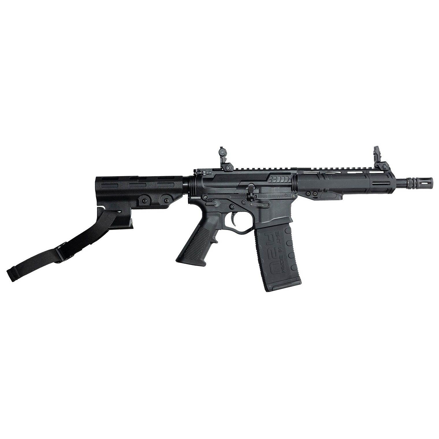Introducing the ATI Alpha Maxx Semi-Automatic AR-15 Pistol, a powerful and versatile firearm engineered for performance and reliability. Featuring a 7.5” barrel and ATI’s new patent pending handguard with forward M-Lok slots and full Pic rail this pistol offers exceptional accuracy and adaptability. The metal-reinforced polymer receiver ensures durability and lightweight handling, making it ideal for various applications. This particular SKU ships complete with 30 Round Magazine and a set of Flip Up Sights as seen in the images. These upgraded accessories add tremendous extra value to this package. - More about the pistol - The Alpha Maxx lower features a patented hammer and trigger pin retainment system, preventing movement from the hammer and trigger pin during firing. The Alpha Maxx also features ATI’s patented over-molded metal insert, which reinforces the buffer tube housing and rear takedown pin. This allows for metal-on-metal contact with both the buffer tube as well as the rear takedown pin thus increasing strength and durability from recoil and consistent firing. This particular model comes in a popular all black finish, a set of flip up sights, and a manually adjustable brace installed.