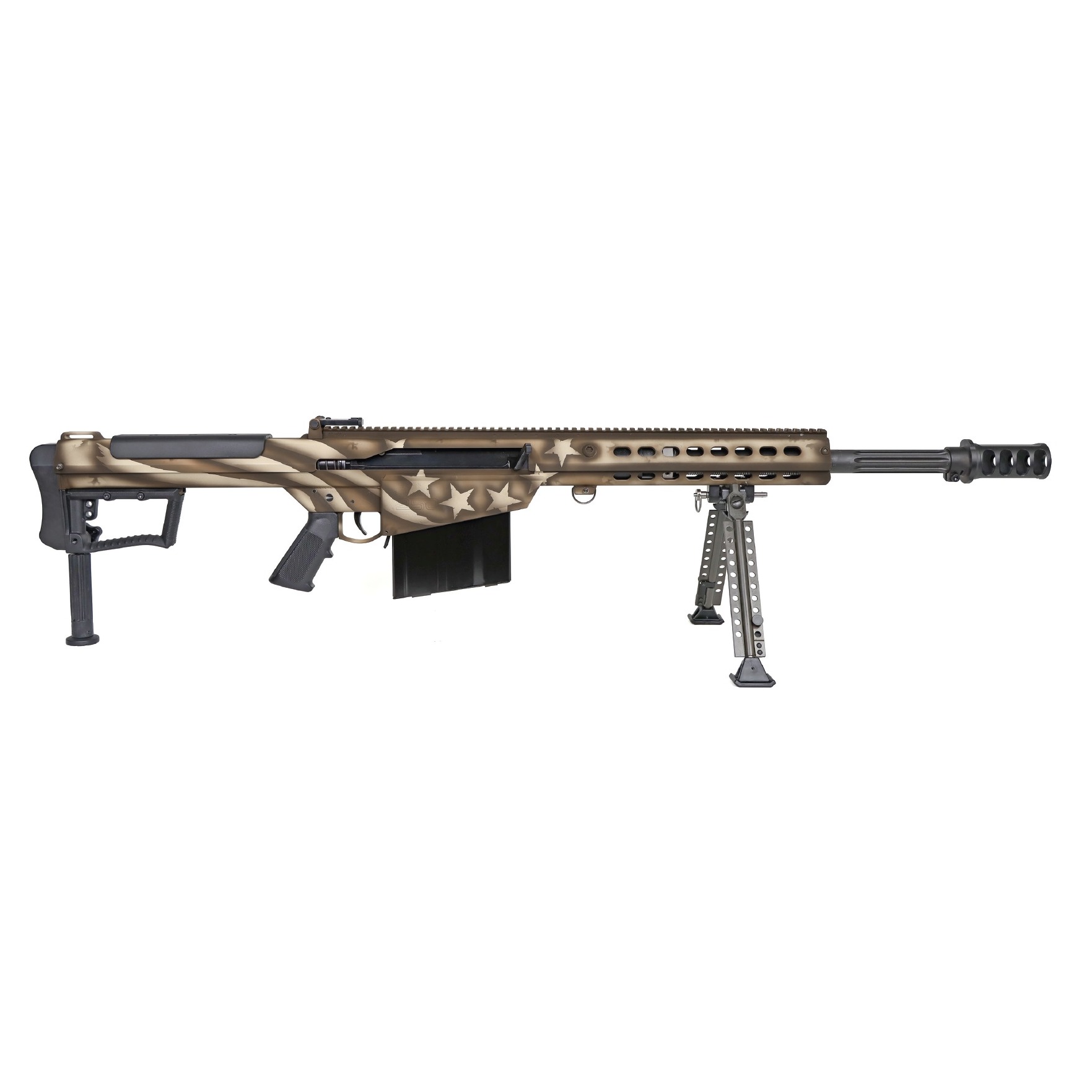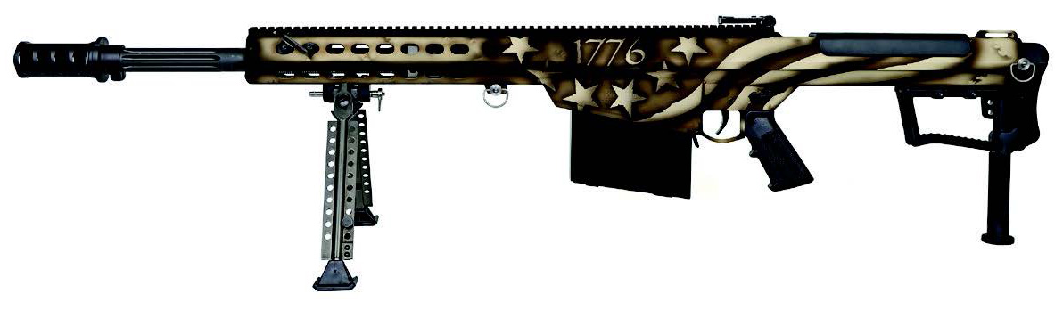 The 20-inch M107A1 rifles carry serial numbers FREEDOM001 through FREEDOM250 and feature a custom Cerakote finish with a subdued American 1776 flag design. Each rifle will be delivered as a complete serial-number matching commemorative set pairing the firearm with a RMJ Tactical Kestrel Tomahawk along with a serial-number matching commemorative challenge coin and certificate of authenticity signed by Ronnie Barrett founder of Barrett Firearms. The complete presentation is housed in a custom Pelican