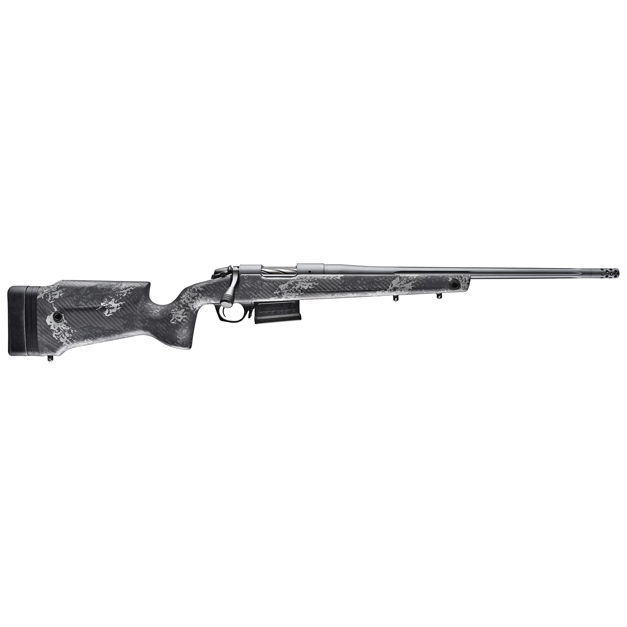 Bergara, Premier Series, Crest, Bolt Action Rifle, 25 Creedmoor, 20” Fluted Barrel, Threaded 5/8X24, Omni Muzzle Brake, Cerakote Finish, Sniper Gray, Monte Carlo Carbon Fiber Stock, 5 Rounds, 1 AICS Style Magazine