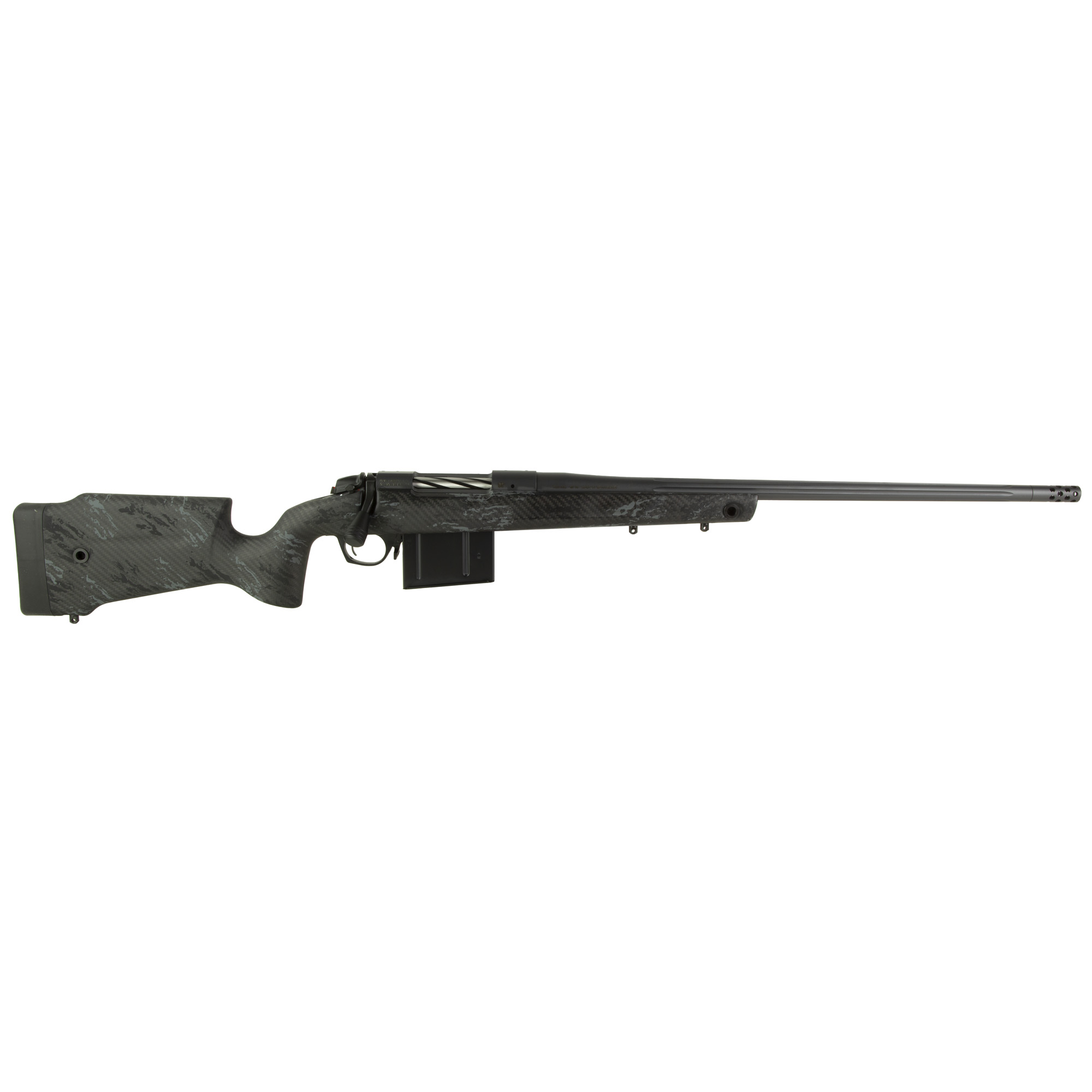 The B14 CREST is a high performance ultralight rifle designed for long distance hunting, and especially mountain hunting. Built on a lightweight and solid Monte Carlo carbon fiber stock, which is manufactured with the most innovative technology. It sets a new standard in carbon stocks, being the best choice for carbon rifles. Bergara combined this new stock together with the Bergara B-14 action and their well-known barrels, resulting in a unique model that barely exceeds 3kg. It is protected with Cerakote Sniper Grey to cope with unpredictable mountain weather conditions. All B-14 rifles are capable of producing sub-1.0 MOA groups or less at 100 yards using factory match grade ammunition.