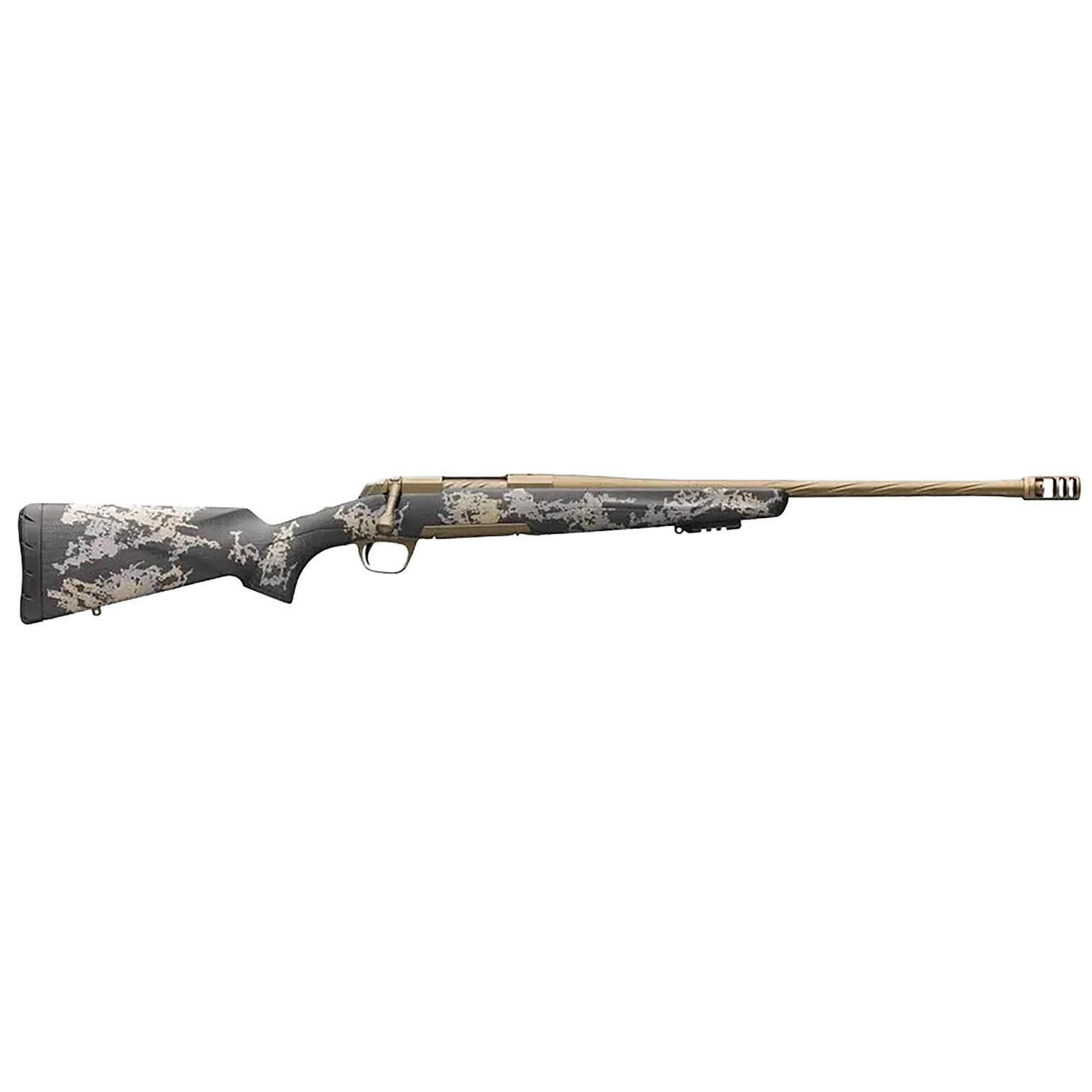 Big game bolt-action hunting rifle with carbon fiber stock with accent graphics, Cerakote finish on a stainless steel barrel and action, spiral fluted bolt, spiral fluted and lapped sporter barrel and threaded muzzle. Includes Recoil Hawg muzzle brake and thread protector.