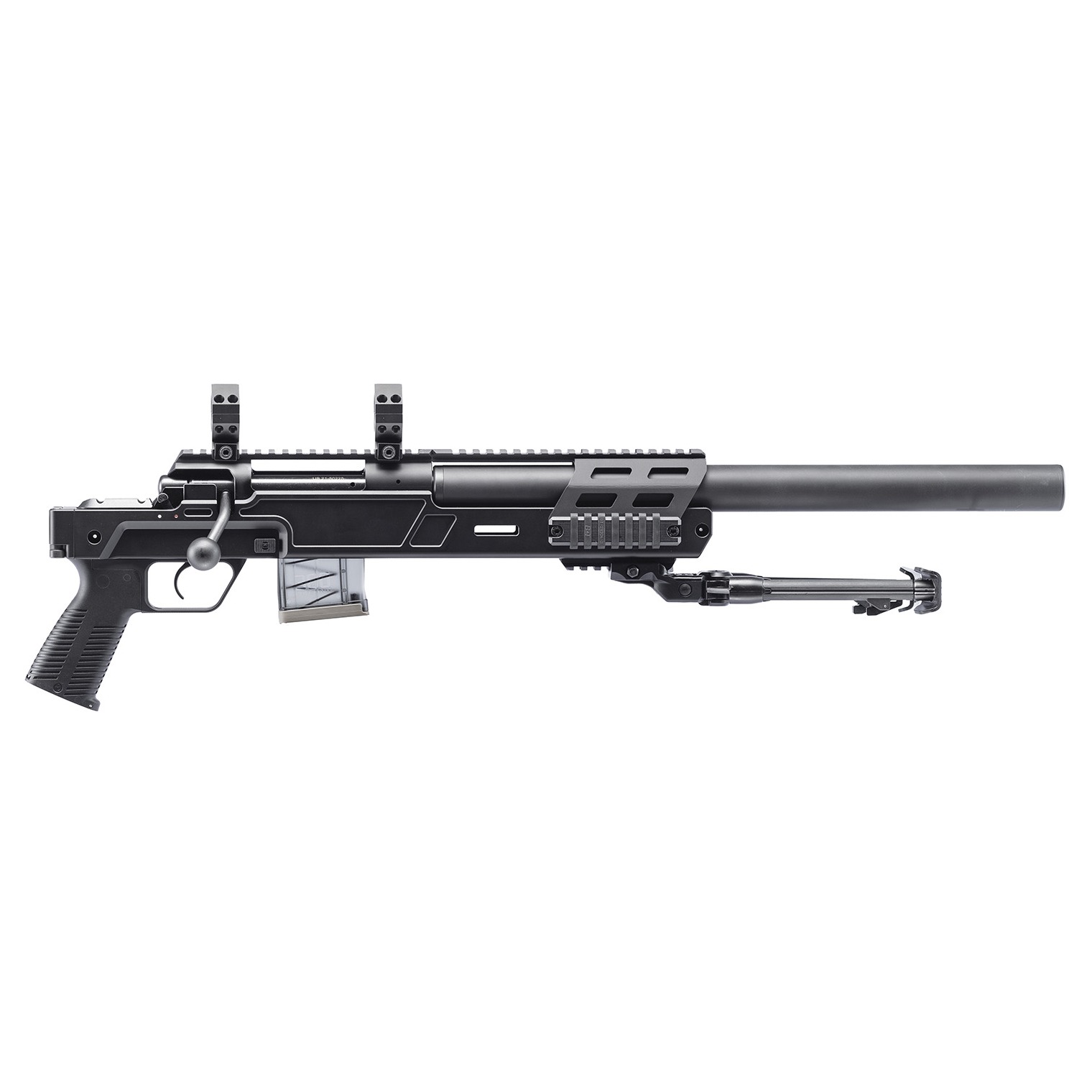 Designed for discrete carry, rapid deployment and maximum accuracy, the SPR300 is the ideal tool for specialized sniping missions. Equipped with a state-of-the-art integral sound suppressor, the SPR300 emits Hollywood-quiet sound levels of just 121 dB with subsonic ammunition. Precise Swiss engineering allows the rifle to be broken down for transport and quickly reassembled with no perceivable point of impact shift. The SPR300 Pro ships in pistol configuration and includes the firearm, suppressor, scope rings, bipod, and magazine.