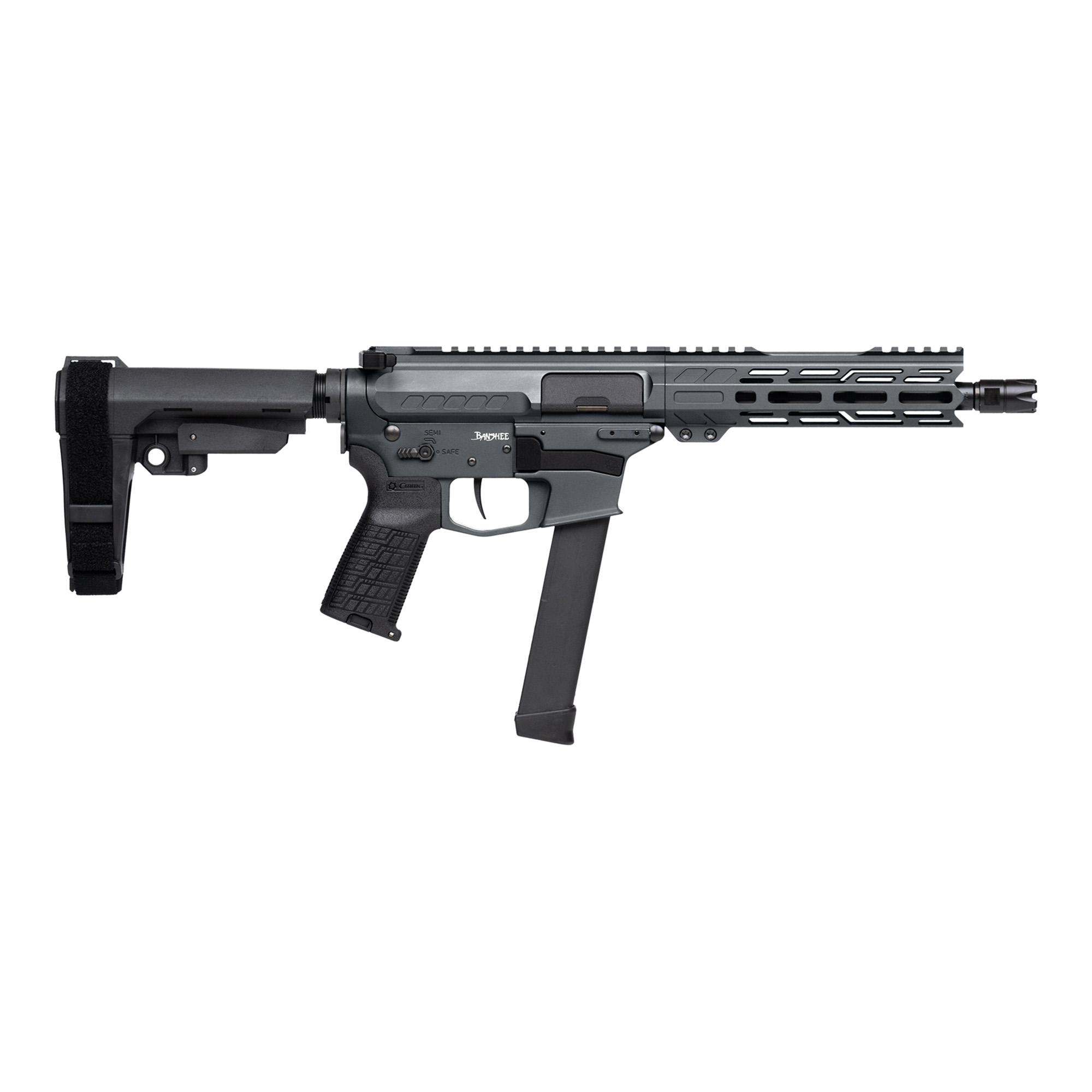 CMMG 99A520FTNG Banshee FE MkGs 9mm Luger 33+1 8” Black Nitride Threaded Barrel, M-LOK Handguard, Tungsten Cerakote Aluminum Receiver w/Picatinny Rail, Black Polymer CMMG RipBrace, CMMG Zeroed Grip