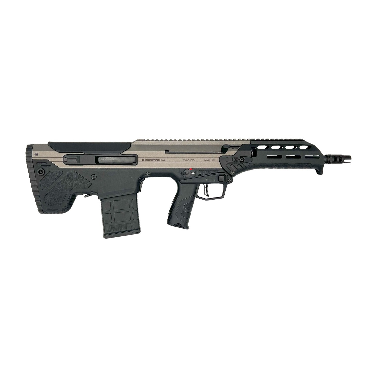 The WLVRN is Desert Tech’s third-generation semi-automatic bullpup rifle platform. Utilizing an integrated receiver, The WLVRN is completely new on the inside and maintains the familiar manual of arms of the MDRX. The WLVRN inherits the barrel mounting and clamping mechanism of the SRS & HTI family of precision rifles. The barrel mounting system is machined integrally into the receiver. This all-new design significantly increases the stiffness of the WLVRN’s upper receiver and improves the accuracy of the WLVRN by up to 30%. Includes Magpul PMAG, WLVRN maintenance tool and user manual.