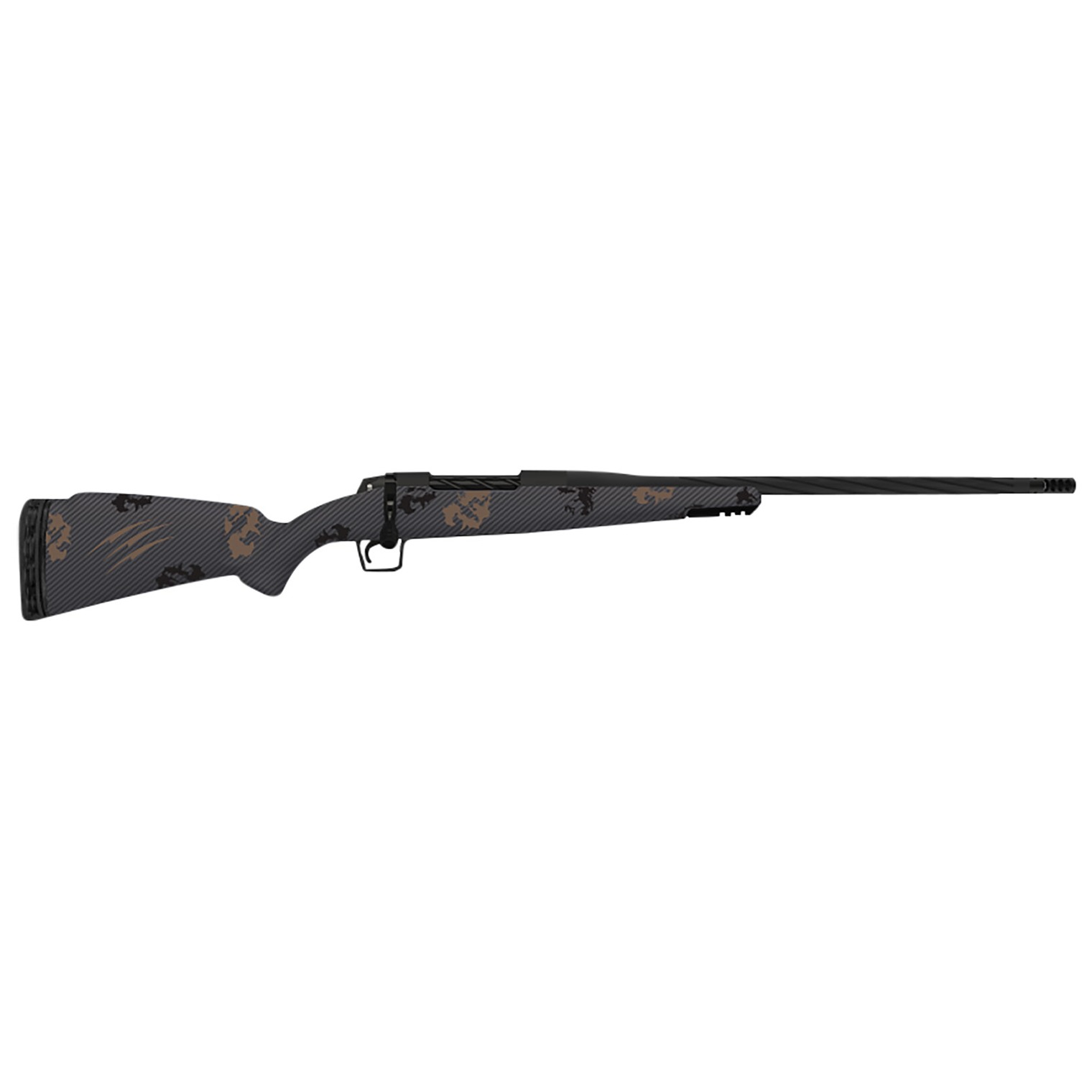 Fierce Firearms TWROG270WIN22BT Twisted Rogue 270 Win 22” Armour Lube Black Steel Threaded Barrel, Drilled & Tapped Steel Receiver, LR Negative Comb Trophy Camo Carbon Fiber Stock