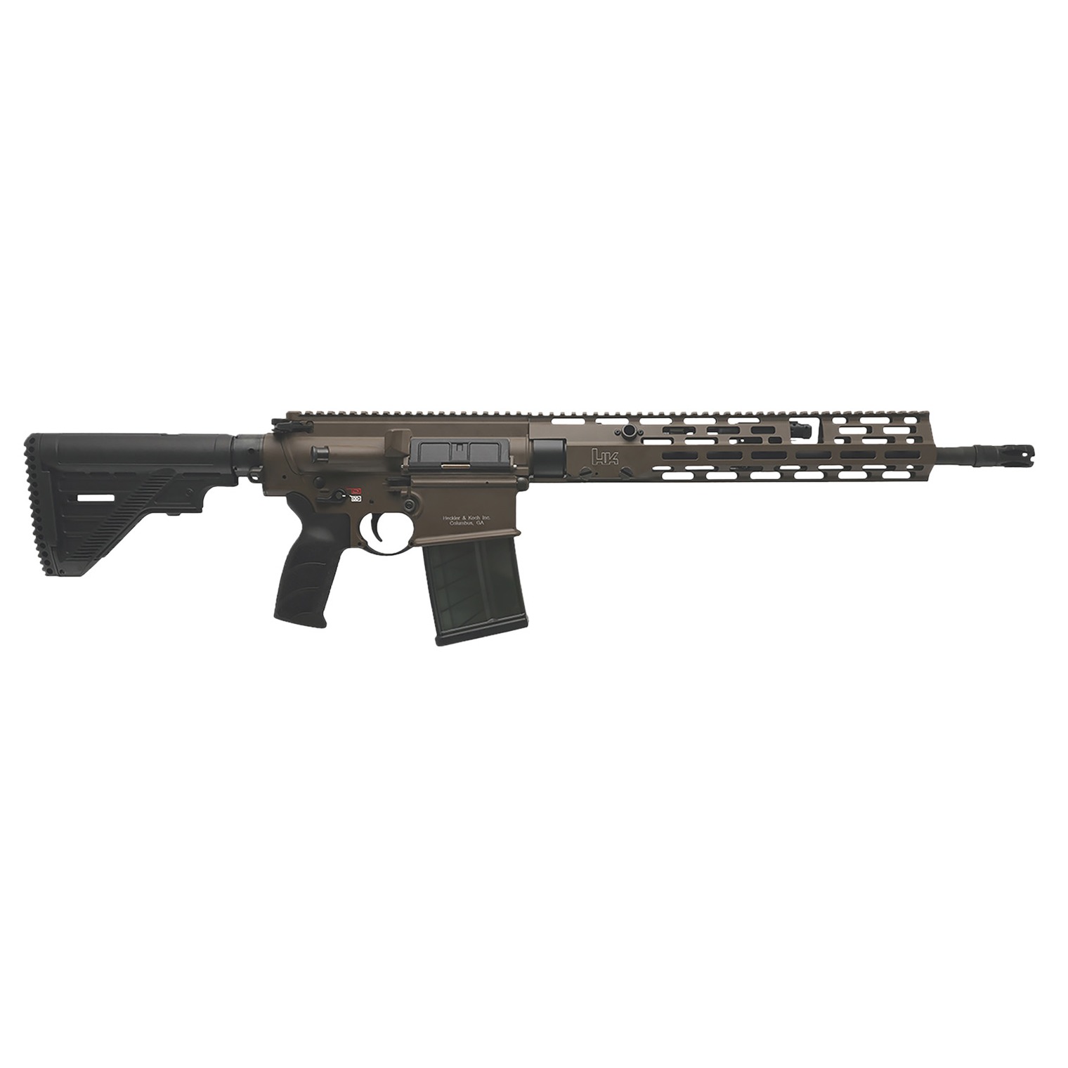 HK 81001206 MR762 A4 7.62x51mm 10+1 16.50” Black Threaded Barrel, Patriot Brown Picatinny Rail Receiver, M-LOK Handguard, 6 Position Black Synthetic Stock, Black Finger Grooved Grip, Ambidextrous