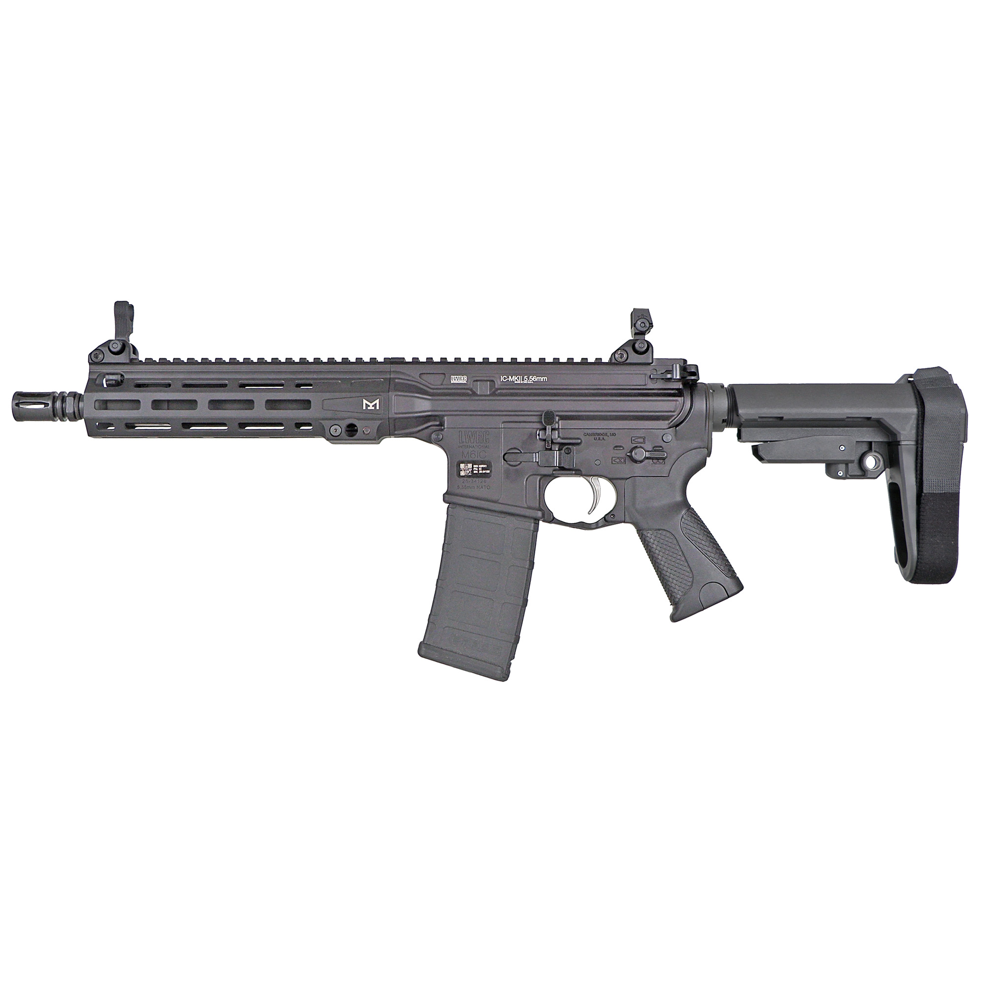 LWRCI next evolution of their renowned Individual carbine family is the IC-MKII. Features updated design of the upper receiver and the adoption of the M-LOK mounting system for the handguard. The two position, adjustable gas block was updated to a paddle style and is now located inside the rail, easily accessed to select suppressed or unsuppressed. The proprietary Short stroke gas piston operating system delivers unmatched reliability in extreme conditions and is easy to maintain. MKII model is offered in a pistol configuration with a 10.50” barrel and fitted with a SBA3 Brace.