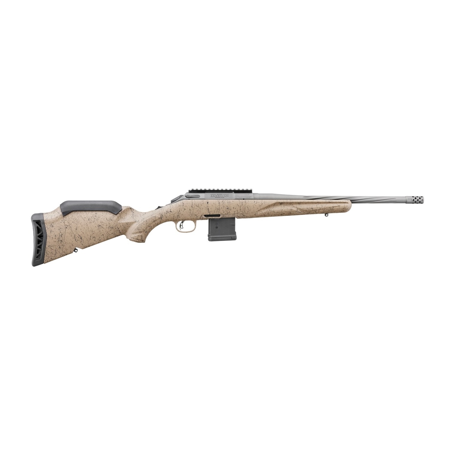 Ruger, American Rifle Ranch, Generation II, Bolt Action Rifle, 5.56 NATO, 16.1” Spiral Fluted Barrel, 1:8 Twist, Threaded 1/2X28, Muzzle Brake, Cerakote Finish, Cobalt, Flat Dark Earth Splatter Synthetic Stock, Manual Safety, Picatinny Rail, 10 Rounds, 1 Magazine, Left Hand