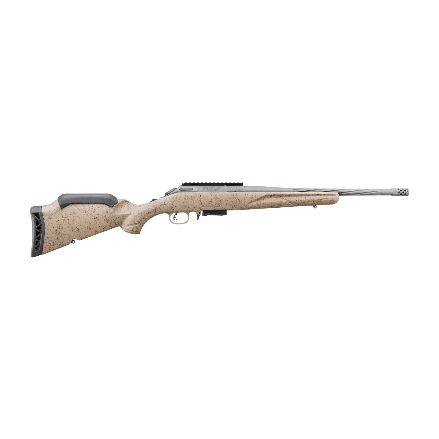 Ruger, American Rifle Ranch, Generation II, Bolt Action Rifle, 7.62X39, 16.1” Spiral Fluted Barrel, 1:9.5 Twist, Threaded 5/8X24, Muzzle Brake, Cerakote Finish, Cobalt, Flat Dark Earth Splatter Synthetic Stock, Manual Safety, Picatinny Rail, 5 Rounds, 1 Magazine, Left Hand