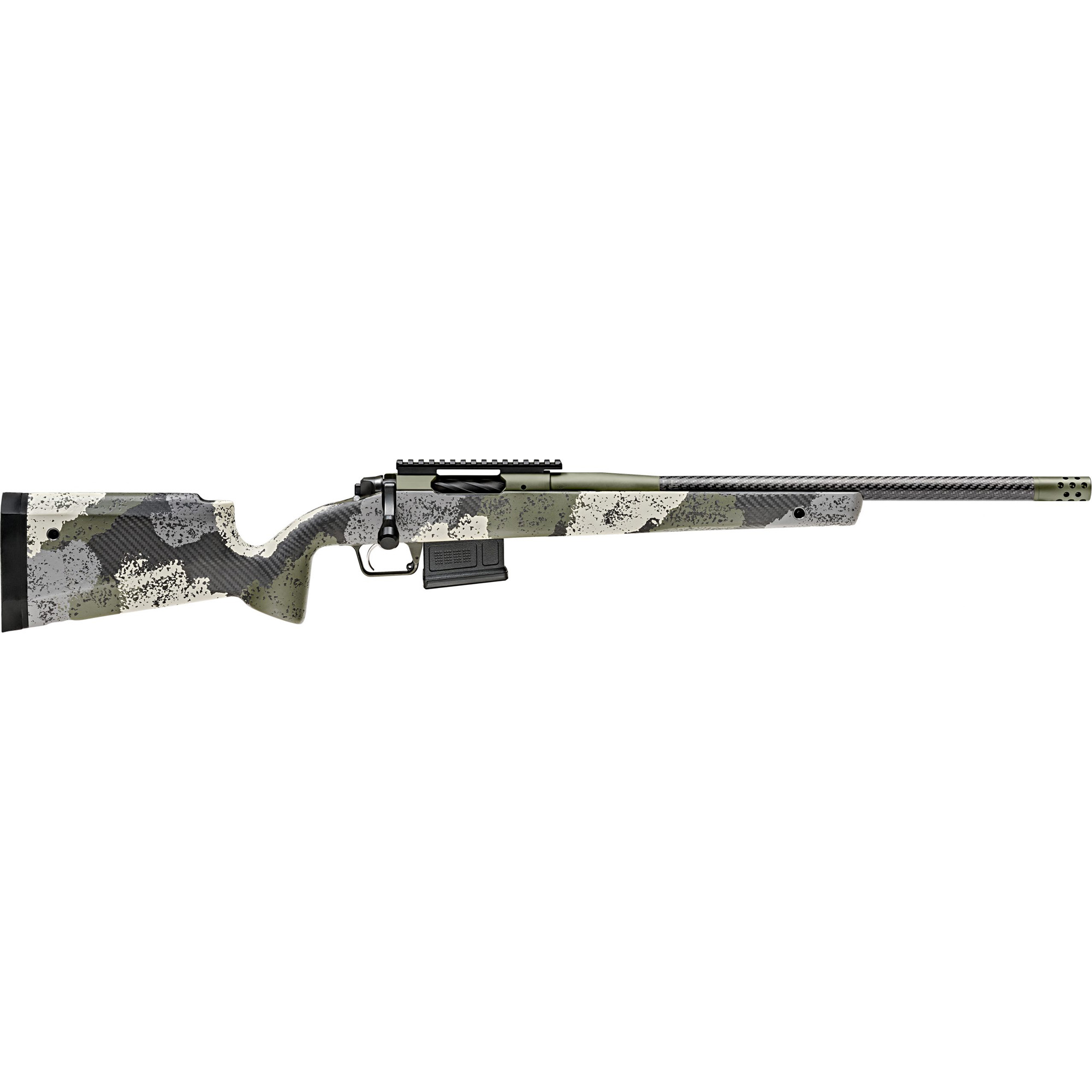 The Model 2020 Waypoint is built to deliver the accuracy and performance from a custom grade rifle. The rifle features a premium carbon fiber stock and barrel with a .75 MOA accuracy guarantee. Dual locking lugs on the fluted bolt run smoothly down EDM raceways for repeatable engagement while an optimized extraction cam provides robust, reliable extraction in any condition. Additionally, the bolt features dual cocking cams for ease of operation and toolless disassembly for maintenance. The stock is made from 100% carbon fiber and the trigger from TriggerTech features a low-profile, non-snag safety and employs the company’s Frictionless Release Technology.