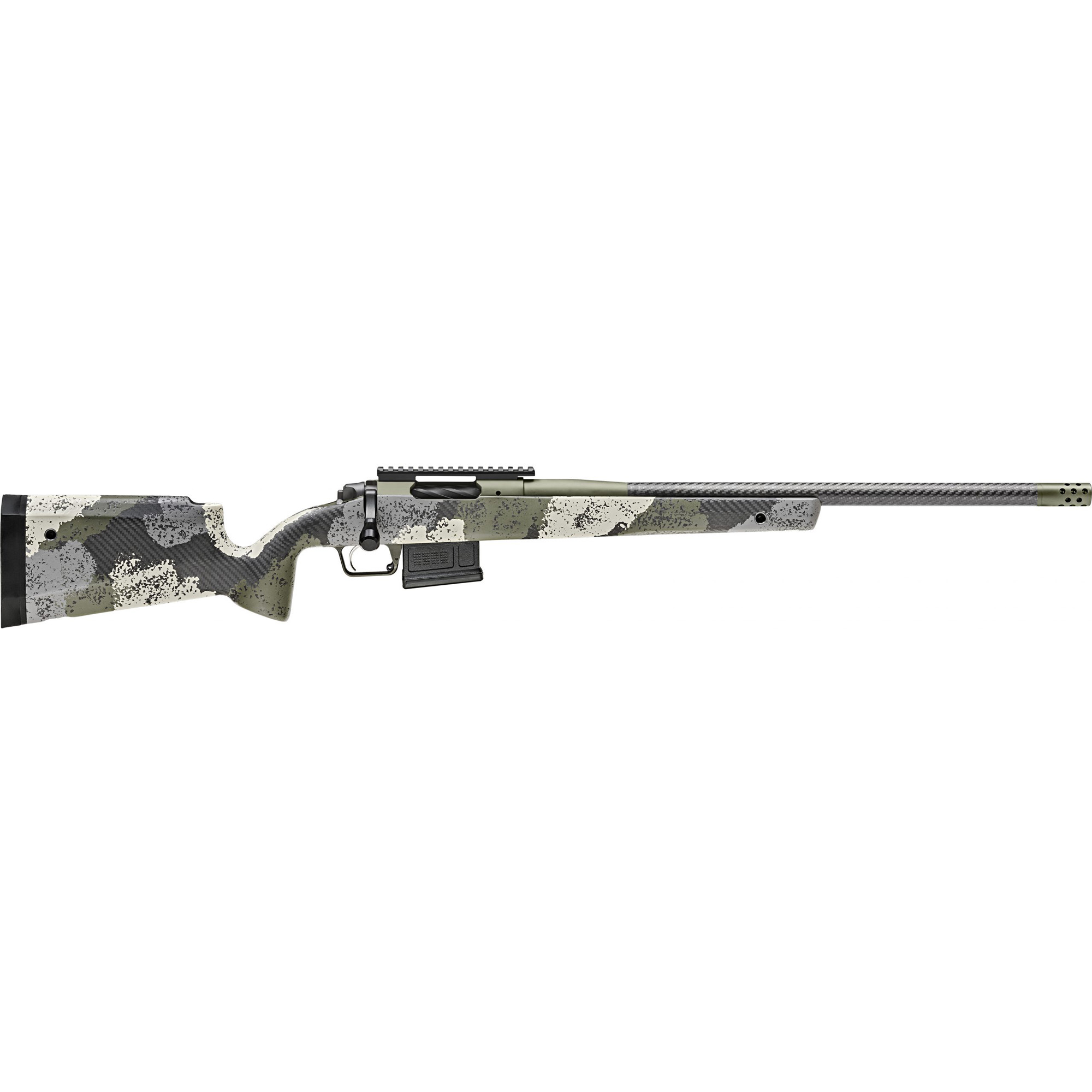 The Model 2020 Waypoint is built to deliver the accuracy and performance from a custom grade rifle. The rifle features a premium carbon fiber stock and barrel with a .75 MOA accuracy guarantee. Dual locking lugs on the fluted bolt run smoothly down EDM raceways for repeatable engagement while an optimized extraction cam provides robust, reliable extraction in any condition. Additionally, the bolt features dual cocking cams for ease of operation and toolless disassembly for maintenance. The stock is made from 100% carbon fiber and the trigger from TriggerTech features a low-profile, non-snag safety and employs the company’s Frictionless Release Technology. Includes magazine and rifle case.