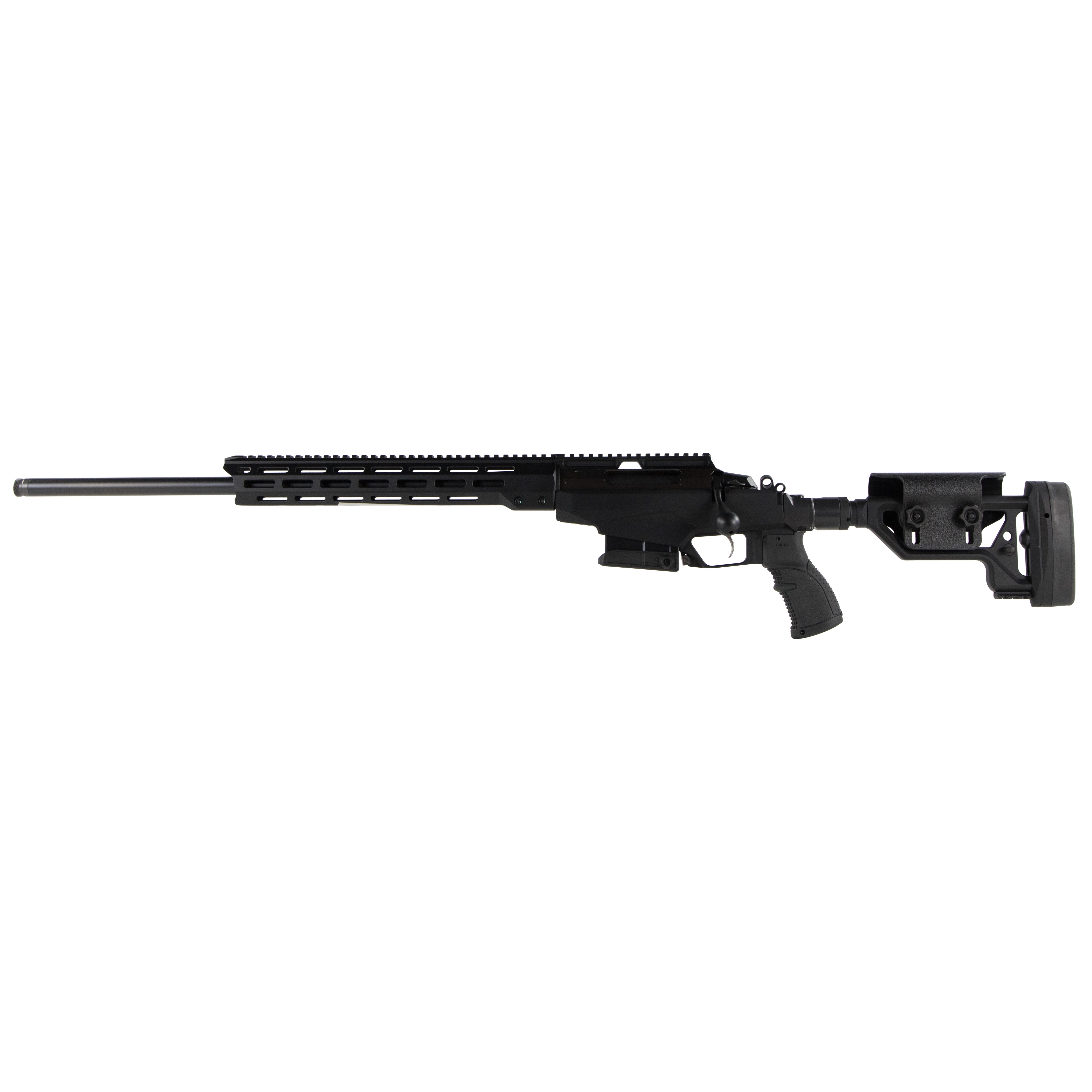 Tikka’s T3x TAC A1 is the ultimate tool for long range accuracy. Its meets the toughest military and LE specifications with a modular chassis built to meet MIL/LE specifications, AR stock, grip, and forend interface. The rigid forend has optimal wall thickness to prevent bending and an optic-ready, 13.5” M-LOK configuration. The rear stock has a machined aluminum frame with a soft, height-adjustable recoil pad; adjustable cheekpiece with adjustable angle; LOP spacers with inclination; Picatinny attachment for a monopod, and a QD rear mount. The modular chassis is full aluminum bedded. The TAC A1 utilizes a double stage trigger and adjustable weight of pull. This left hand 308 Winchester model has a 24” barrel with a blued finish.