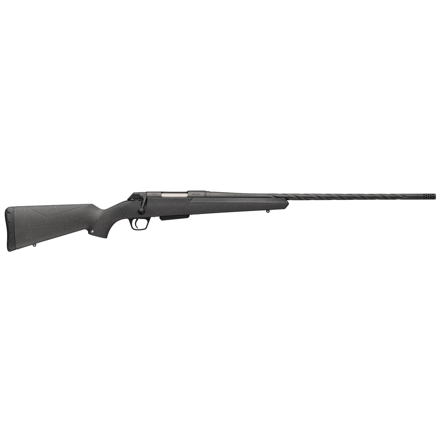The Winchester XPR Extreme Tunsten QPQ rifle is a step forward in design and manufacturing. Its spiral fluted barrel eliminates the amount of metal, creating a lightweight barrel that is easy to carry through rugged terrain. The advanced textured stock is built for superior grip in a variety of conditions and will stand up to the scratches and bumps you’re bound to encounter on the stalk or the walk to the stand. The Tungsten Cerakote finish is tough and non-reflective. Featuring threaded, drilled and tapped, fluted, button rifled barrel; steel receiver; composite stock; Inflex recoil pad; installed sling swivels; bolt unlock button; recessed target crown and 2-position thumb safety. Includes threaded muzzle brake.