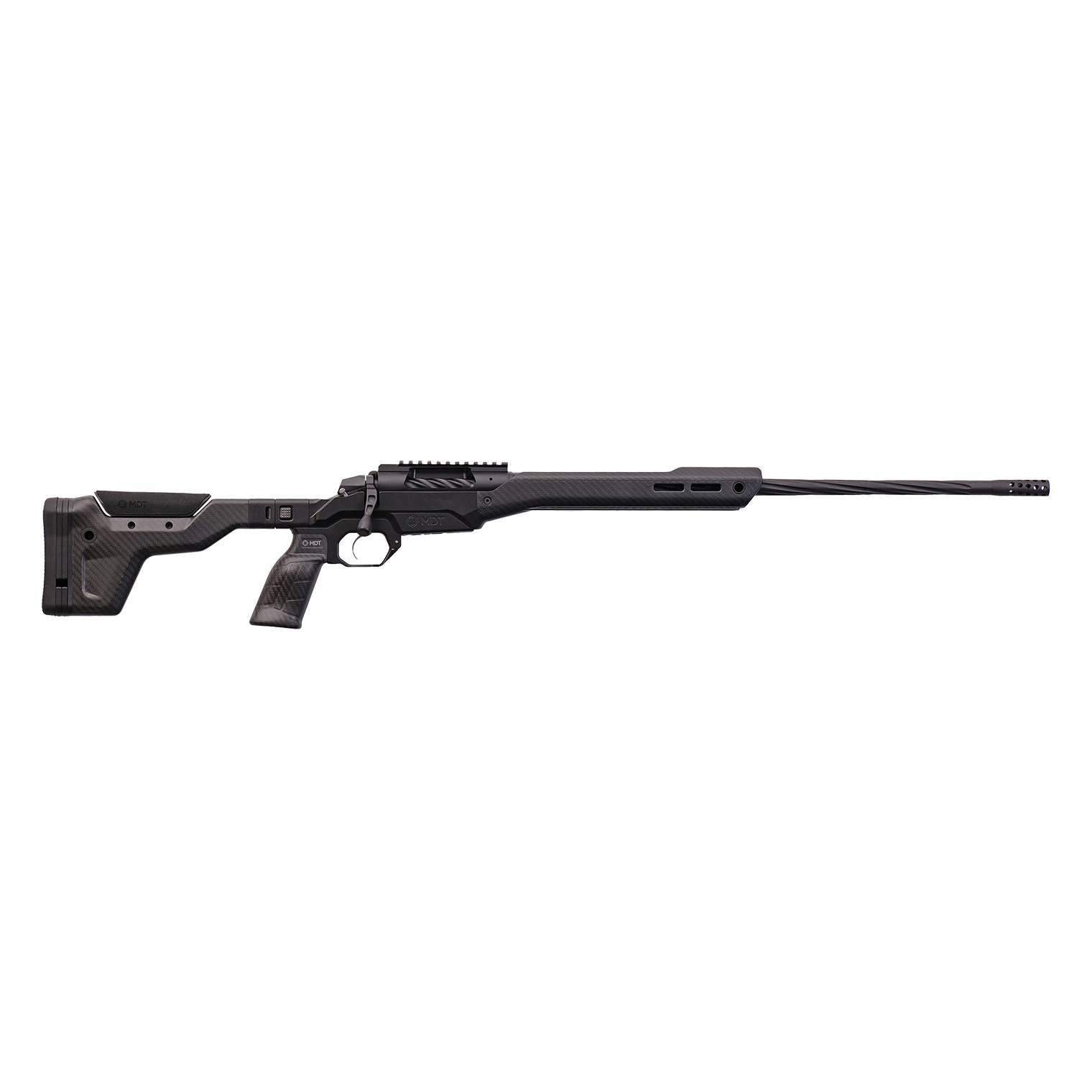 The Alpine MDT Carbon is built on Weatherby’s bolt action rifle platform, the Model 307. The Model 307 action is a 2-lug, fully cylindrical action compatible with many aftermarket accessories. The stock chassis system features v-block bedding, adjustable length of pull, adjustable comb and AICS magazine compatibility. The chassis is constructed of a magnesium alloy stock, carbon fiber forend, carbon fiber pistol grip and carbon fiber buttstock. The forend has an integral ARCA rail for easy attachment to a tripod and a foldable buttstock for compact storage. The BSF carbon barrel delivers unmatched accuracy and comes with Weatherby’s Accubrake DST (Directional Self-Timing Brake). *Note 24” barrel + 2” muzzle brake.