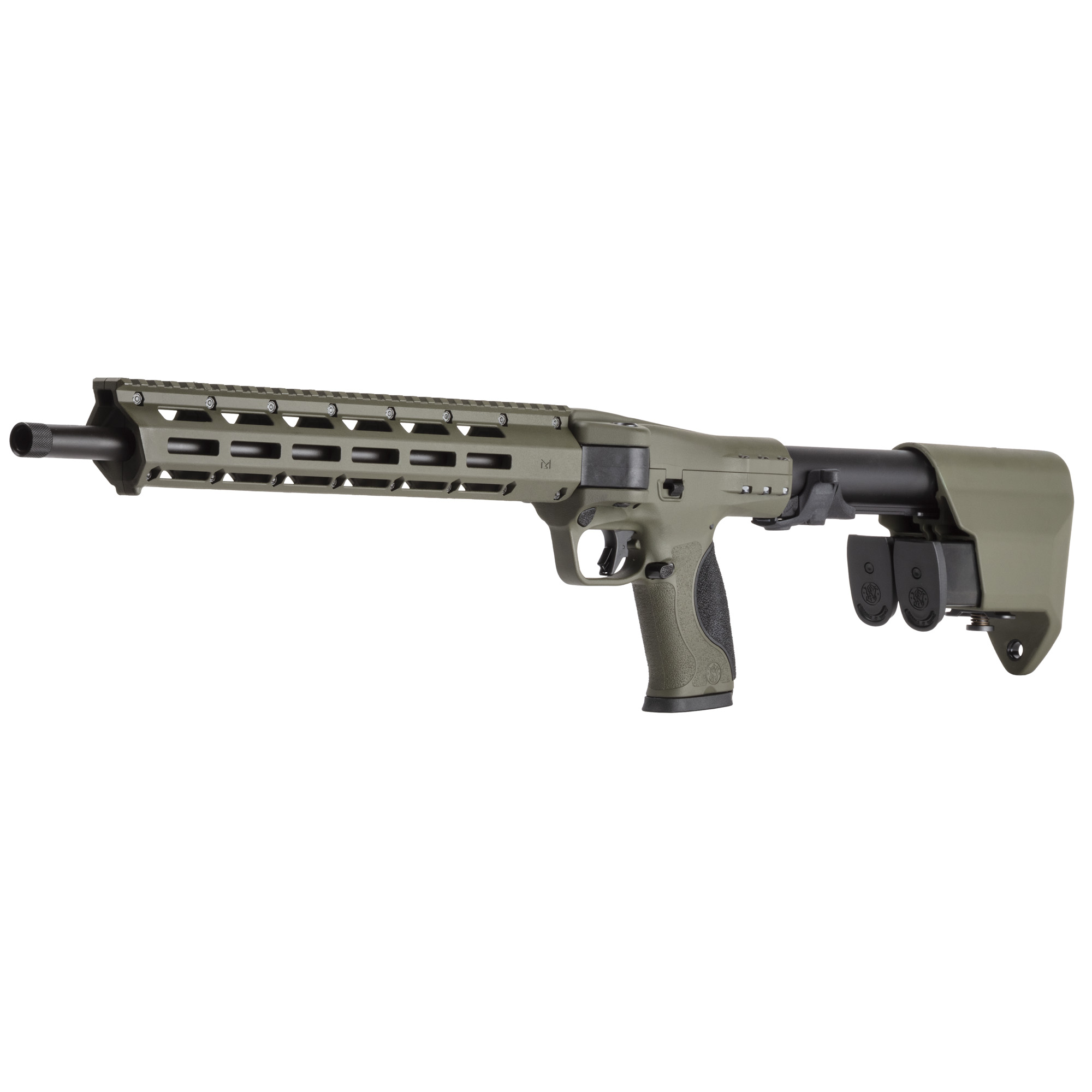 Smith & Wesson, M&P FPC, Semi-automatic Folding Carbine, 10MM, 16.25” Barrel, Threaded 9/16X24, Cerakote Finish, Black with Olive Drab Green Components, Interchangeable Backstraps, Free Float M-LOK Handguard, Optics Ready, Fixed Stock Magazine Storage, 15 Rounds, 3 Magazines