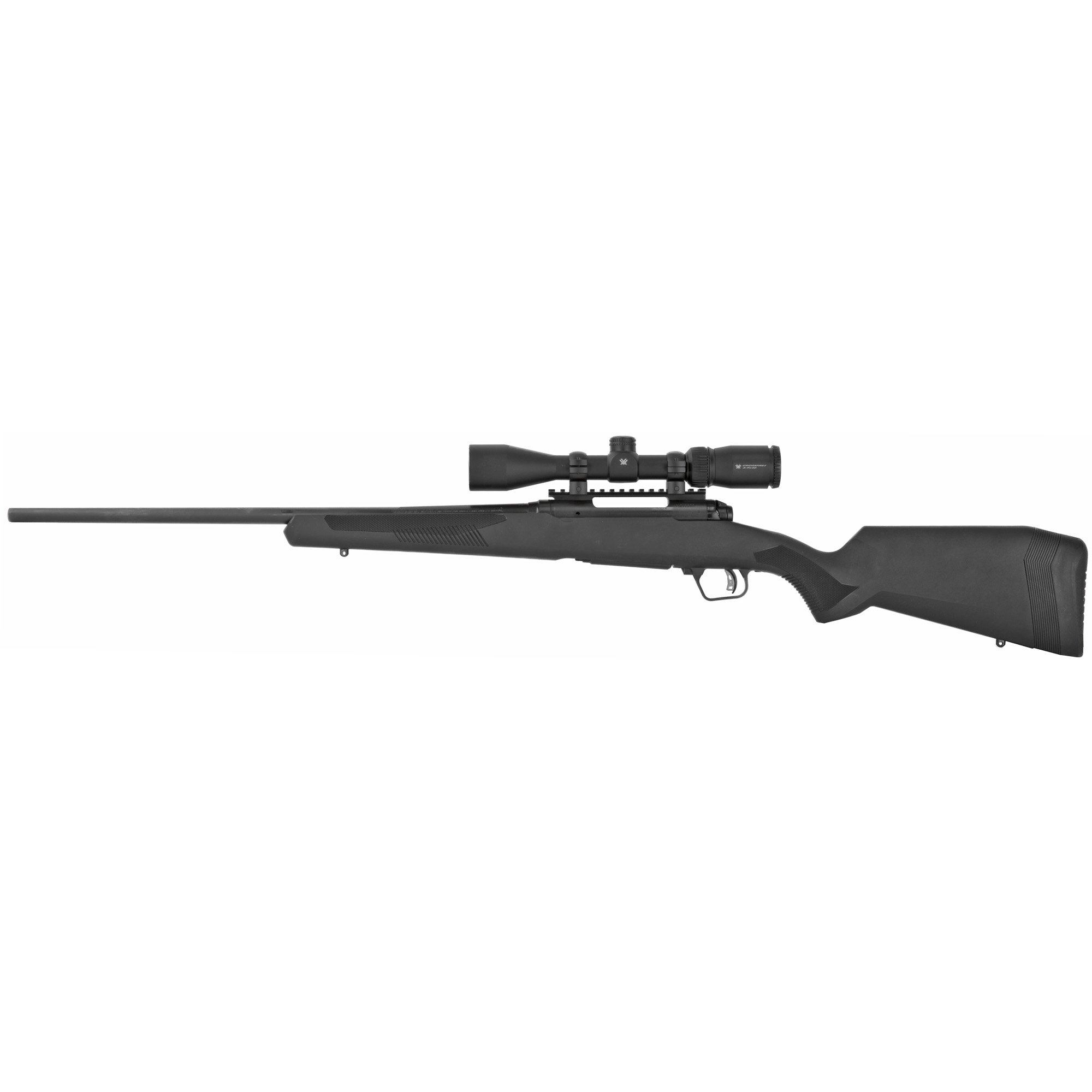 Savage Arms, 110 Trail Blazer XP, Bolt Action Rifle, 243 Winchester, 20” Straight Fluted Barrel, Threaded, Cerakote Finish, Black, Synthetic Flat Dark Gray Stock, 4 Rounds, 1 Magazine, Includes Vortex Crossfire II 3-9X40 Optic
