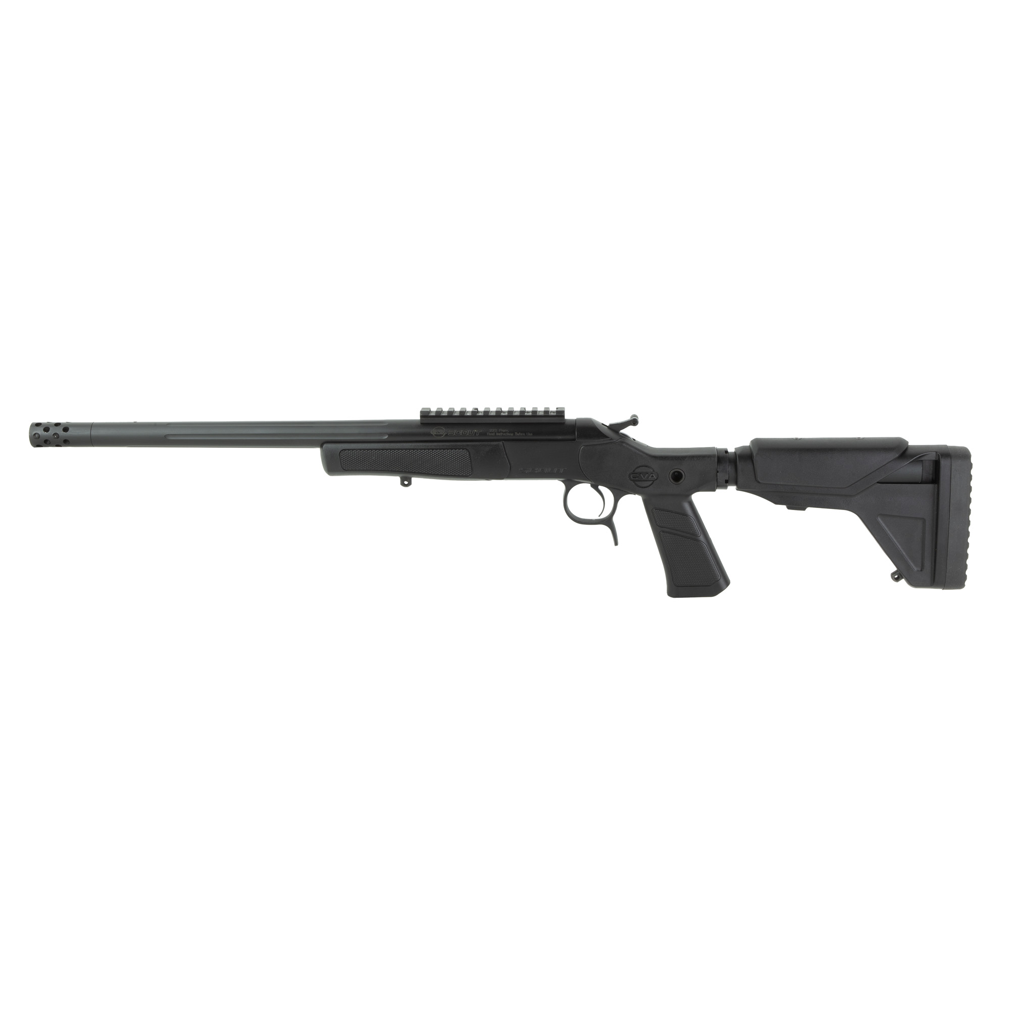 The CVA Scout XP with a 16.50” barrel delivers a balanced, compact rifle setup while retaining the modernized Scout design and full-size performance. The pistol grip and buffer tube stock provide improved comfort and control, with adjustable length of pull and bolt-on cheek risers allowing shooters to dial in proper fit and consistent eye-to-scope alignment. A threaded, fluted barrel enhances versatility and handling, making the Scout XP a strong option for hunters and shooters who want maneuverability.