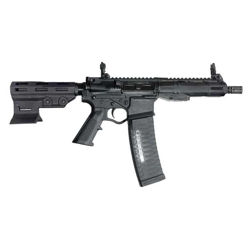 Introducing the ATI Alpha Maxx Semi-Automatic AR-15 Pistol, a powerful and versatile firearm engineered for performance and reliability. Featuring a 7.5” barrel and ATI’s new patent pending handguard with forward M-Lok slots and full Pic rail this pistol offers exceptional accuracy and adaptability. The metal-reinforced polymer receiver ensures durability and lightweight handling, making it ideal for various applications. This particular SKU ships complete with 60 Round Magazine and a set of Flip Up Sights as seen in the images. These upgraded accessories add tremendous extra value to this package. - More about the pistol - The Alpha Maxx lower features a patented hammer and trigger pin retainment system, preventing movement from the hammer and trigger pin during firing. The Alpha Maxx also features ATI’s patented over-molded metal insert, which reinforces the buffer tube housing and rear takedown pin. This allows for metal-on-metal contact with both the buffer tube as well as the rear takedown pin thus increasing strength and durability from recoil and consistent firing. This particular model comes in a popular all black finish and features a 60 round magazine, a set of flip up sights, and a manually adjustable brace installed.