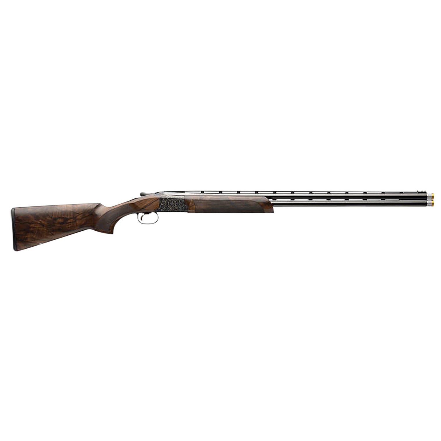 The Citori 725 Sporting High Grade Medallion is built to perform on the range with the lightweight barrels poised to swing into the action. The Citori 725 showcases the FireLite Mechanical Trigger; Inflex II recoil pad makes shooting more comfortable; low profile receiver and tapered locking bolt. Finished in high gloss blue with extensively engraved receiver gets special attention to detail with gold accents that highlight delicate craftsmanship. The Grade IV Turkish walnut is specially selected for the dark grain that ties to the blueing of the receiver and barrels. The walnut is treated to a proprietary, premium gloss oil finish that enhances the beauty of the wood. Includes choke tubes and T-wrench.