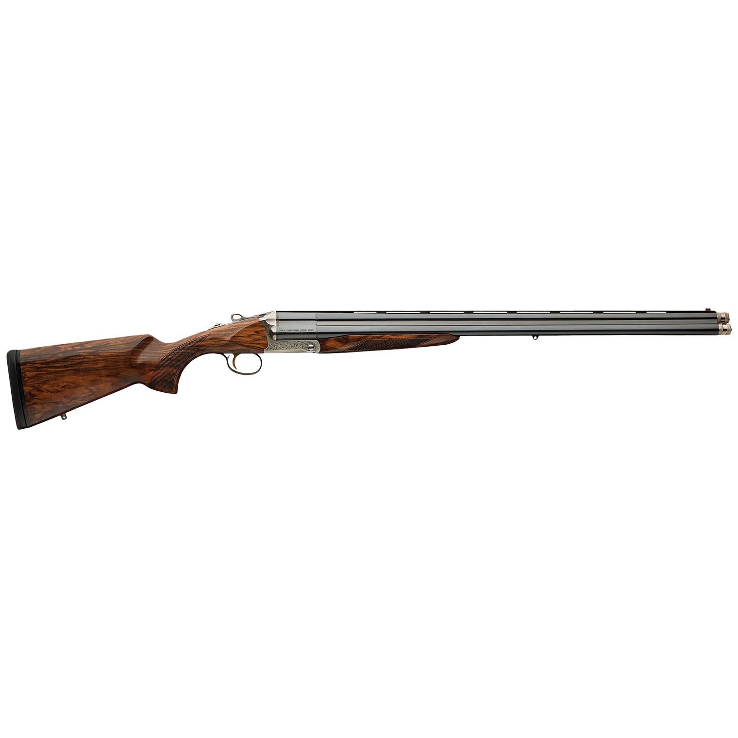 The CD Triple Crown Empire Grade Shotguns features two barrels 20 & 28 gauge 26” vent rib barrels; front Fiber Optic sight; fixed stock; engraved receiver; rubber recoil pad; sling studs and Rem choke system. Includes take down case.