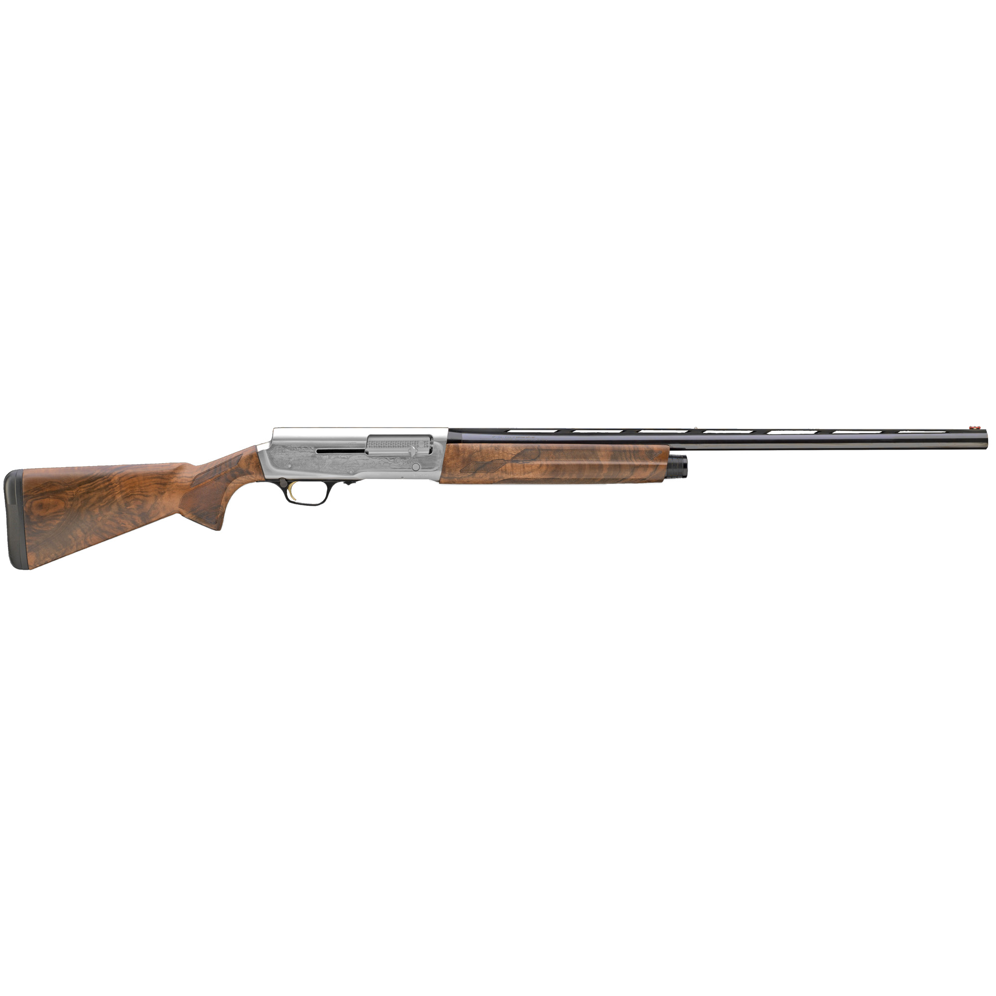 The A5 is built on a smaller, lighter receiver for reduced weight and a sleek feel in your hands. It feels incredibly balanced by placing your front hand closer to the bore line for superior hand-eye coordination and pointability. This autoloading shotgun makes better use of kinetic energy with its powerful, short recoil-operated Kinematic Drive System. Kinematic Drive harnesses recoil energy and converts it into the mechanical motion needed to operate the action. Operation is clean because gases are sent out the barrel and away from the action. The familiar humpback receiver profile melds seamlessly with the rib to extend your sight plane, aiding in natural sight alignment for quicker target acquisition. It also benefits from the advantages of Browning’s Total Barrel Dynamics and the Invector-DS choke tube system to extract the most performance from this revered gauge, come hell or high water. The Browning A5 Ultimate features a gloss oil walnut stock, fiber optic front sight, engraved satin receiver, and high gloss blued barrel.