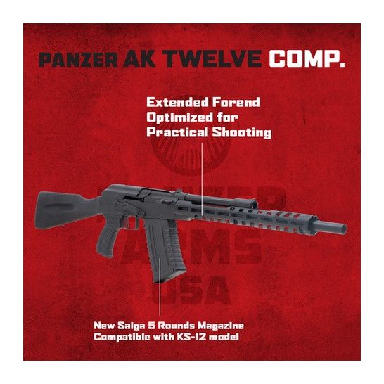 The Panzer AK-12 is a high-performance 12-gauge shotgun engineered for superior reliability and power. Featuring an 18.5” barrel and an overall length of 40”, this robust firearm delivers optimal balance and handling. Weighing in at 7.9 lbs, the AK-12 offers a manageable weight for versatile use in various shooting scenarios. With a capacity of 5+1 rounds, it ensures you’re well-prepared for any situation. The shotgun comes equipped with Full, Modified, and Cylinder (F.M.C.) chokes, providing you with flexible shooting options. Its durable Black Chromed Aluminum not only enhances its sleek, tactical appearance but also ensures long-lasting performance. Choose the Panzer AK-12 for a 12-gauge shotgun that combines power, precision, and durability.