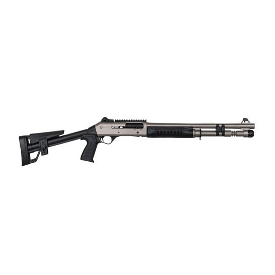 Experience the legend of the Panzer M4 semi-automatic shotgun - a true epitome of rugged reliability, ideal for adverse conditions. This light, durable, and fast-handling firearm boasts the famous A.R.G.O Piston-driven semi-auto action, cycling everything from target loads to hefty 3-inch magnums. With an extended mag tube featuring sling attachment points, a top rail for optics, and ghost ring sights as standard, the M4 Marine Grade Tactical M4 with a fixed skeletonized stock is enhanced with Electroless Nickel-Phosphorus Plating for unparalleled corrosion resistance and durability, making it a stunning and reliable choice.