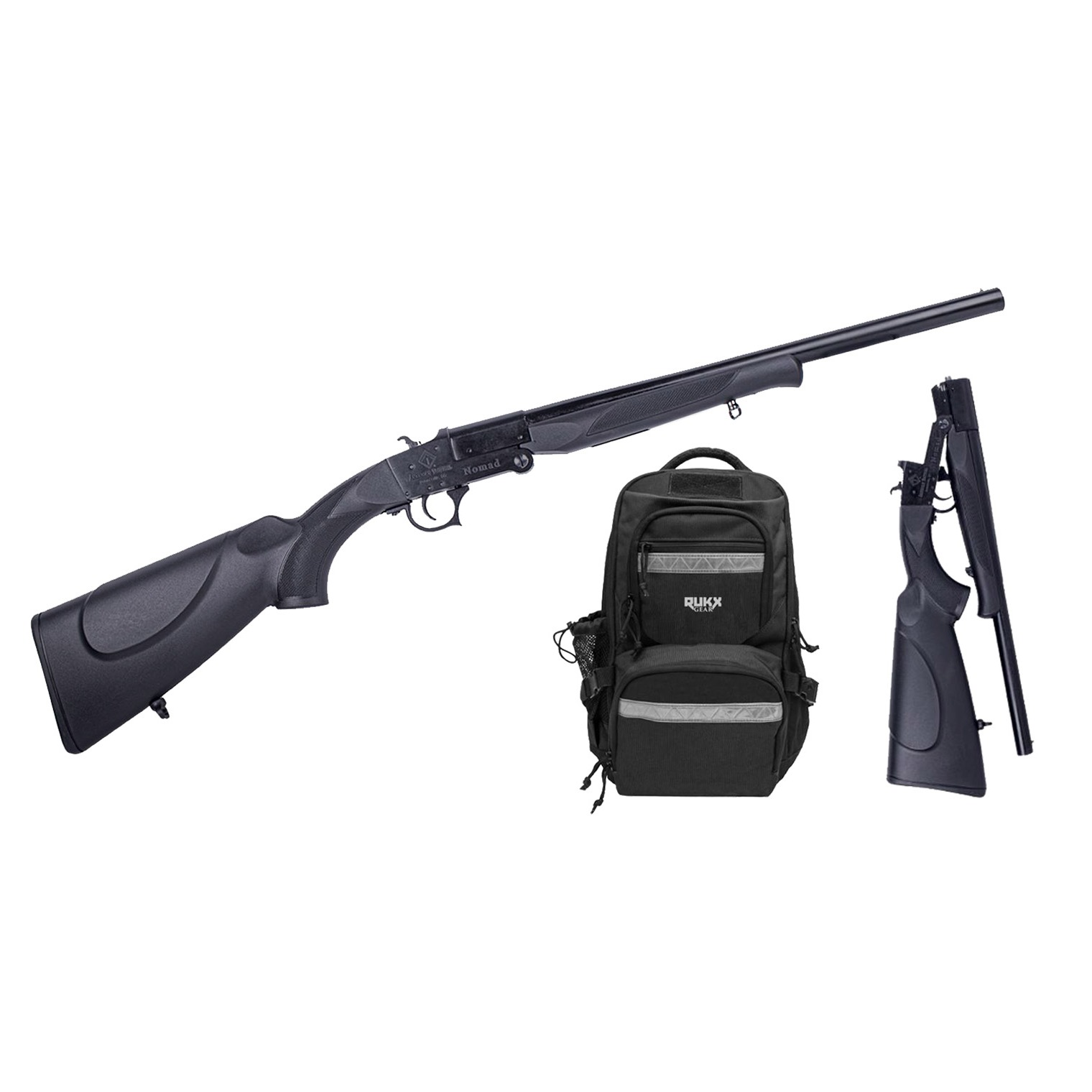 The ATI and Rukx combo the Nomad shotgun and Survivor three day backpack. This match-up comes with a Survivor three day pack custom fit to holster a Nomad single shot shotgun. The Nomad features checkered synthetic stock and forend, 3” chamber, bead front sight and an 18.5” barrel. The Survivor Pack features rear full open zipper pocket for discreet storage of the ATI Nomad, hidden handgun pocket, removable waist/shoulder straps, reflective strip for night safety, Velcro patch mount for customization, reinforced webbing, exterior drink pouch, durable non-rust zipper and pull tabs for easy access to all your gear and water resistant. Includes a black backpack.