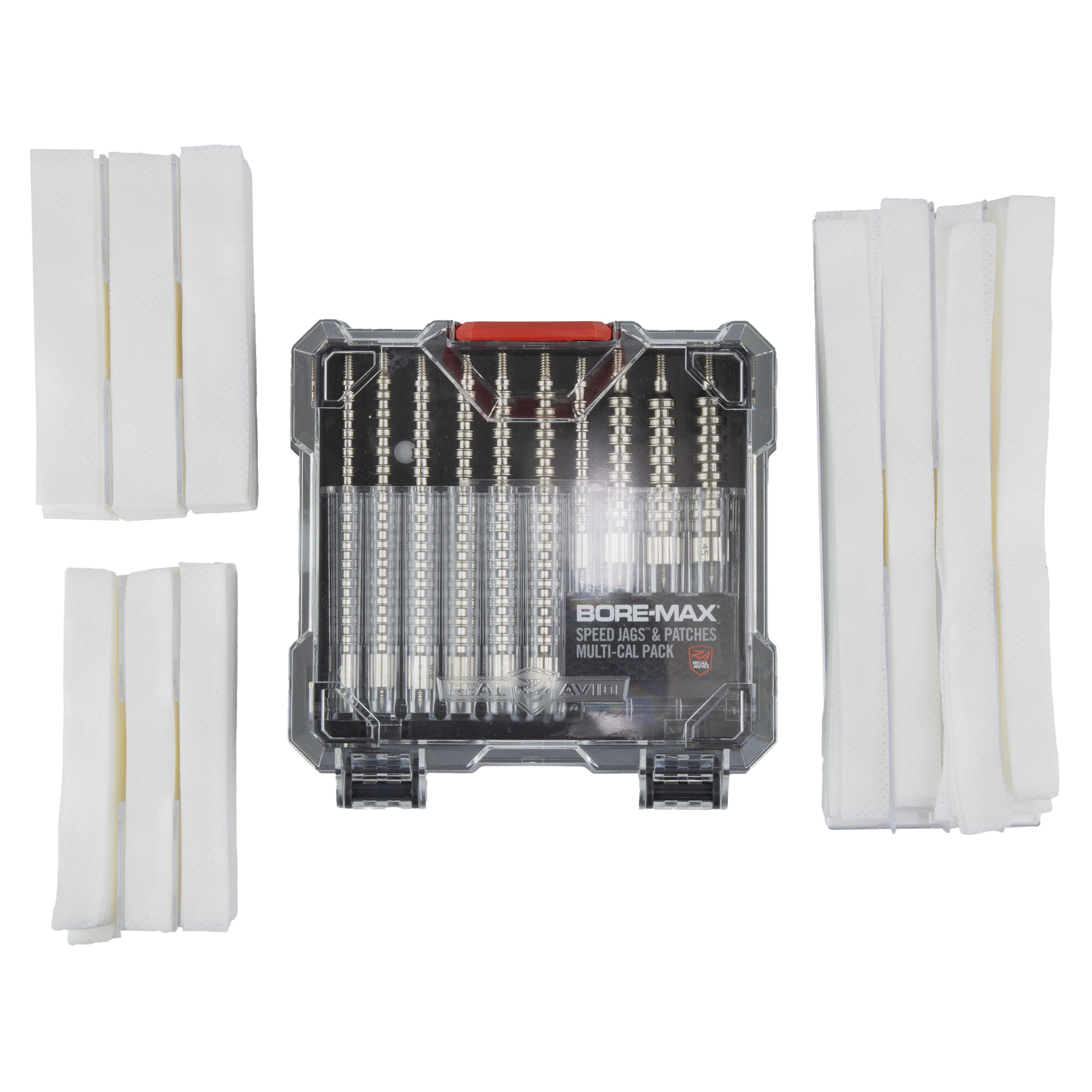 Professional grade nickel plated cleaning system outperforms traditional brushes and jags. Nickel plating is softer than the barrel so there is zero risk of damage. Bore solvent doesn’t break nickel plating down like it does with Phosphorus Bronze. This prevents brushes and jags from leaving a false positive. Easy to use pop up cases are peggable and stackable for easy, compact storage. Jags come with 3 sizes of patches totaling 500 to fit all of your cleaning needs. The Jags and Brushes also have the caliber on the stem to avoid confusion