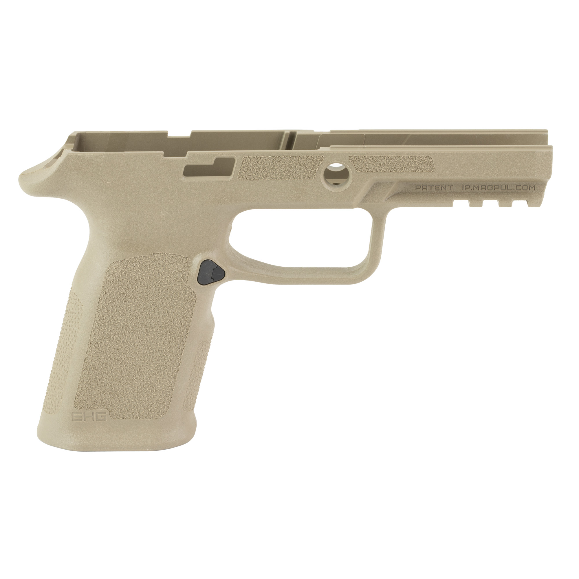 The Magpul EHG SG9 Full Size grip frame for the SIG Sauer P320 functions with OEM P320 trigger modules, OEM 17-round magazines and magazine base plates, and small components and accessories.