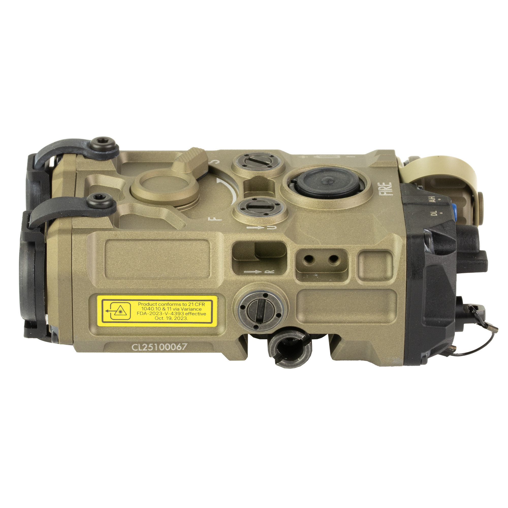 The design for the EOTECH On-Gun Laser (OGL) focuses on human performance factors under extreme stress. The OGL Standard Power is powered by a single CR123 battery providing up to 9 hours of continuous run time. The machined aluminum housing provides extreme durability in a compact package roughly the size of a standard deck of playing cards.T he IR illuminator utilizes a high performing Vertical-Cavity Surface-Emitting Laser (VCSEL) diode creating a clean beam and allowing quick adjustments from spot to flood. The ergonomic (patent pending) lever is unique to the OGL and allows professionals to adjust their illumination needs instantly, all while maintaining superior situational awareness.