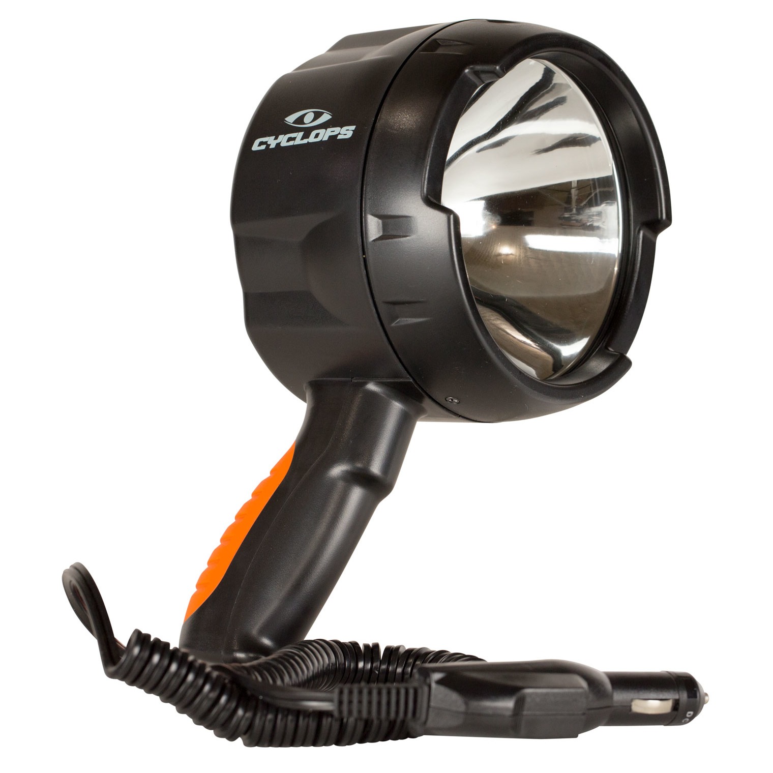 This 12V Direct Spotlight features a 1400 lumens high intensity 100 watt halogen bulb with a 450 meter long range beam, contoured rubberized grip and aluminum reflector w/tempered glass colored lens. Included is a heavy gauge coiled cord that extends up to 10’ with direct use w/12V DC plug adapter and a retractable metal hanging bracket.