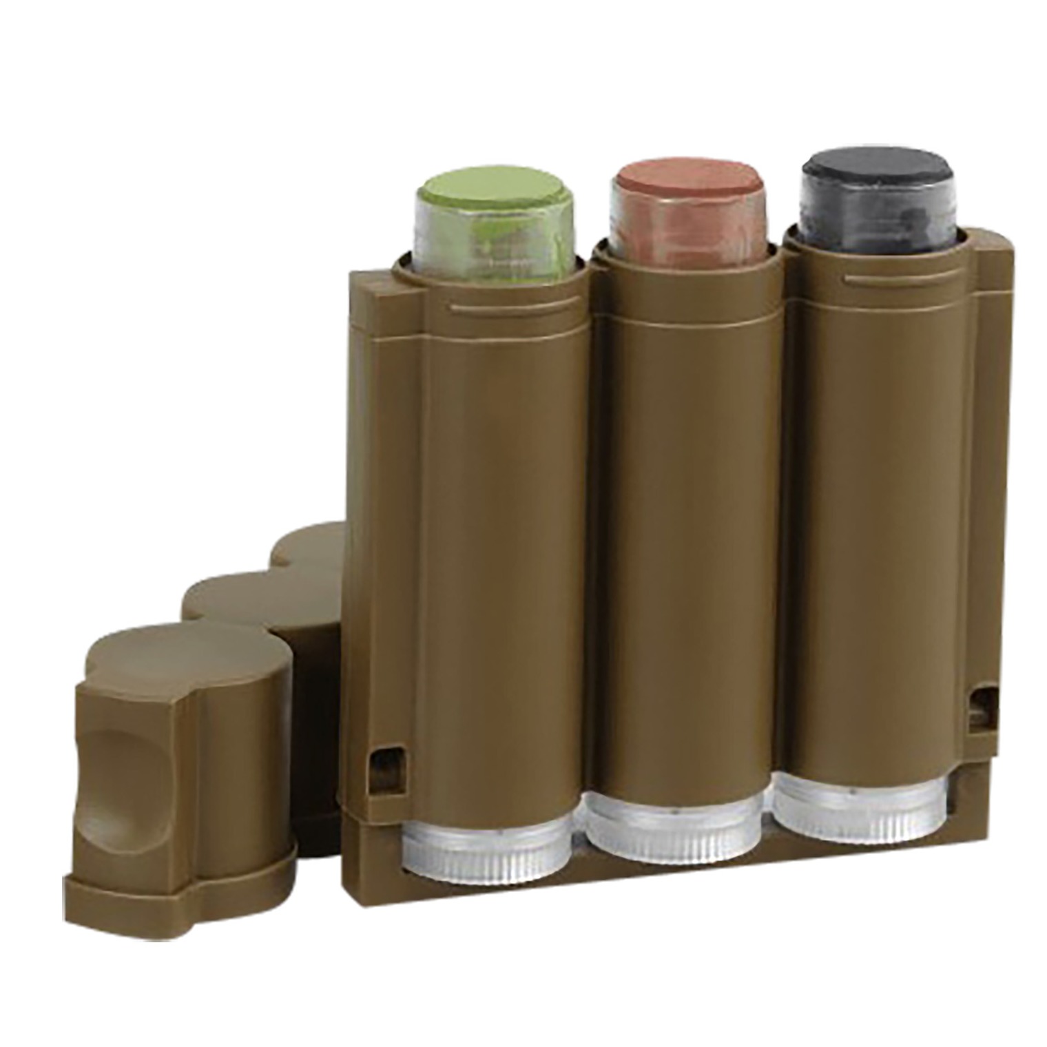 Quickly apply three camo colors with one convenient pocket-sized applicator. Speed Camo allows hunters to use three individual camo sticks at once to create custom patterns, and with the Speed Camo applicator, up to two inches of coverage can be applied with one swipe. Colors include forest green, mud brown and flat black. Speed Camo makeup is easily removed with Hunters Specialties handy Camo-Off makeup remover pads or with soap and water.